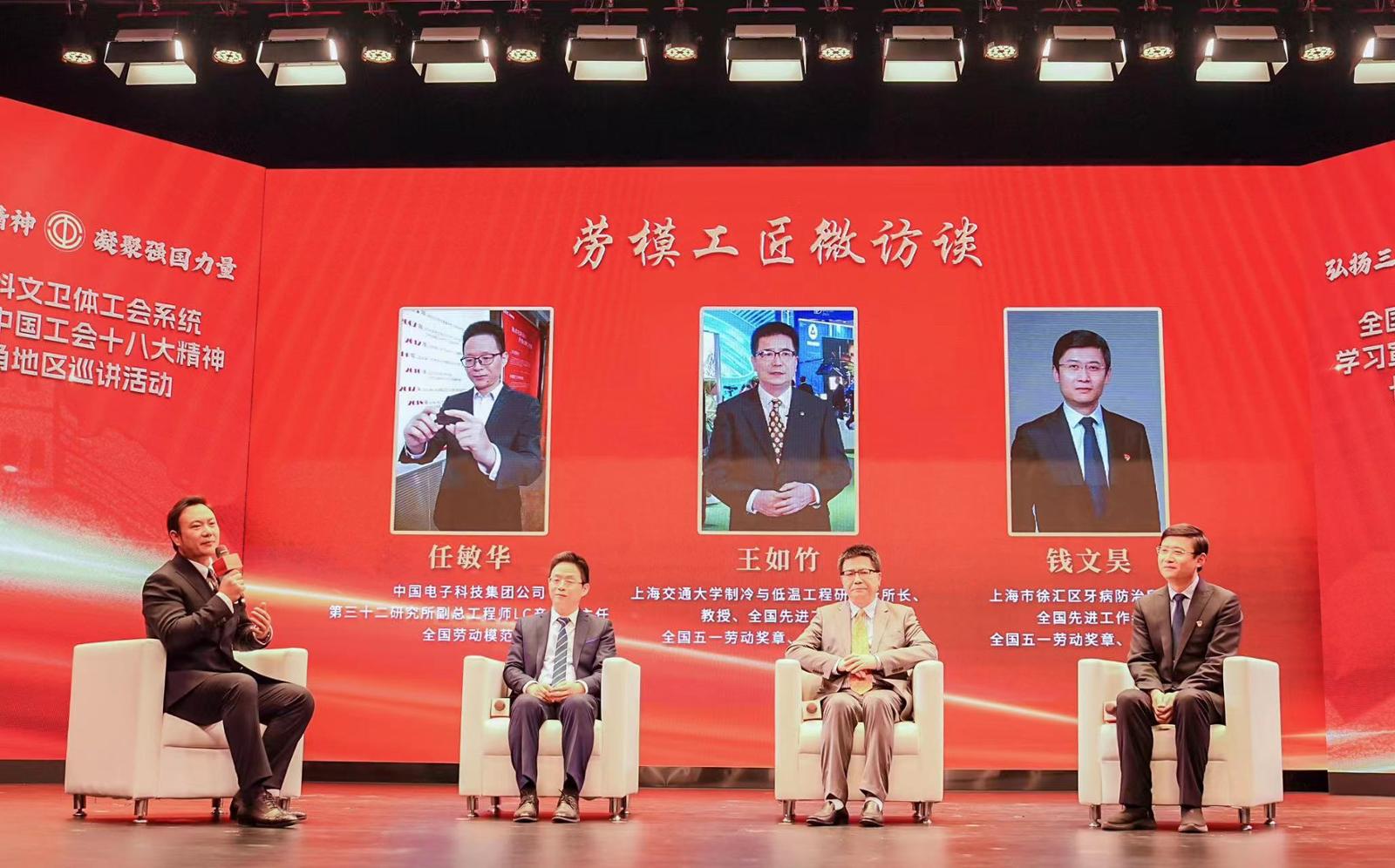 伟大时代呼唤伟大精神,崇高事业需要榜样引领。在接下来的劳模微访谈中,来自上海教育、科技、卫生系统的劳模工匠代表——上海交通大学制冷与低温工程研究所所长王如竹、中国电子科技集团公司第三十二研究所副总工程师任敏华、上海市徐汇区牙病防治所所长钱文昊分享了他们在各自领域的奋斗经历和创新成果,共话新时代“三种精神”。他们的故事激励职工群众在辛勤劳动、诚实劳动、创造性劳动中成就梦想、开拓创新、岗位建功。