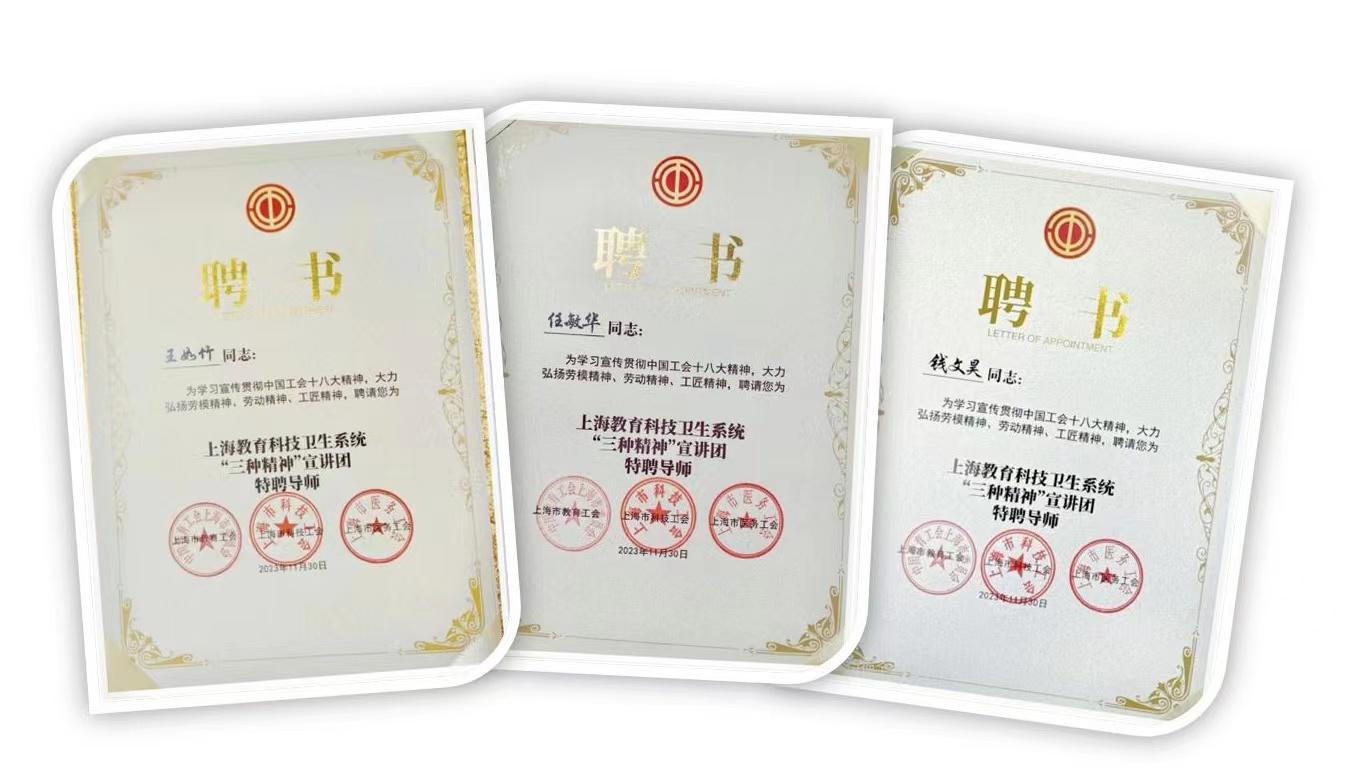 一批三省一市的劳模工匠被聘为上海教育科技卫生系统“三种精神”宣讲团特聘导师。