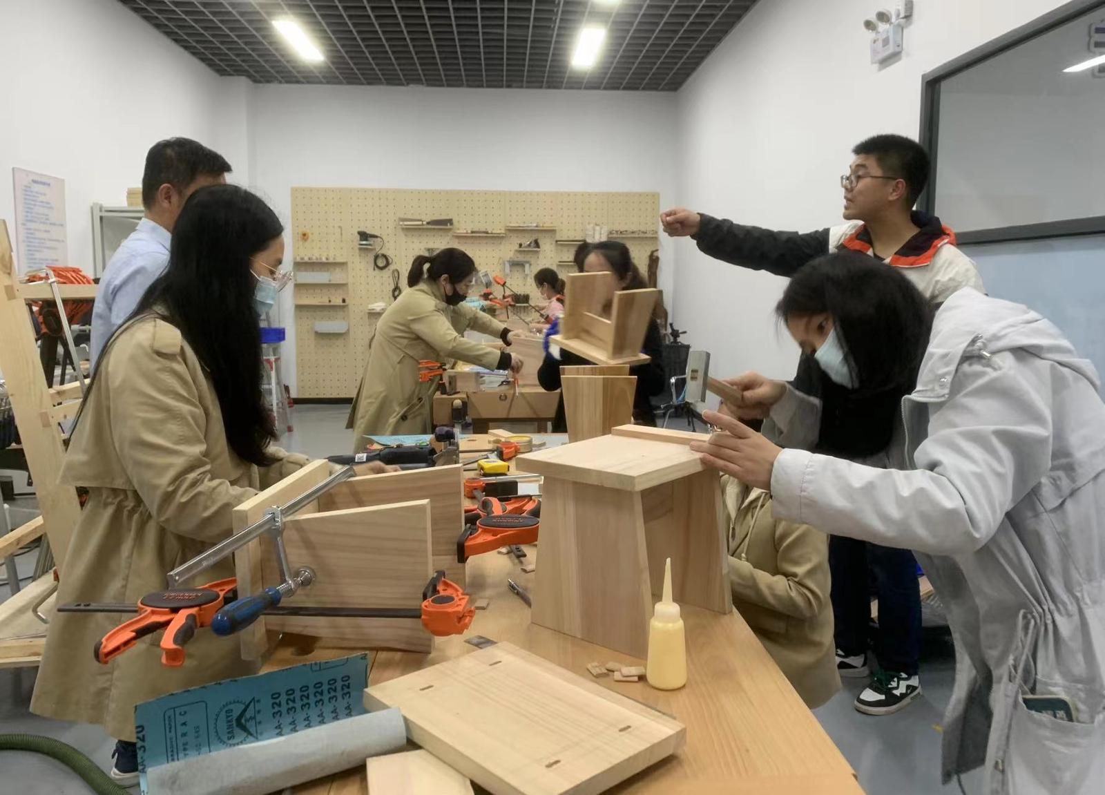 文体活动加强了各学院教职工的情感互动和专业交流,促成了更多新颖有趣的工会活动。在比赛期间,数字建造学院的一位老师聊起了木工制作,引起大家浓厚兴趣,于是,工会组织教师走进该学院的“木工/家具制作项目实训基地”,大家在技能大师夏志豪的指导下,亲手制作木凳、手机支架,体验“一榫一卯”间的别具匠心,成就感满满。