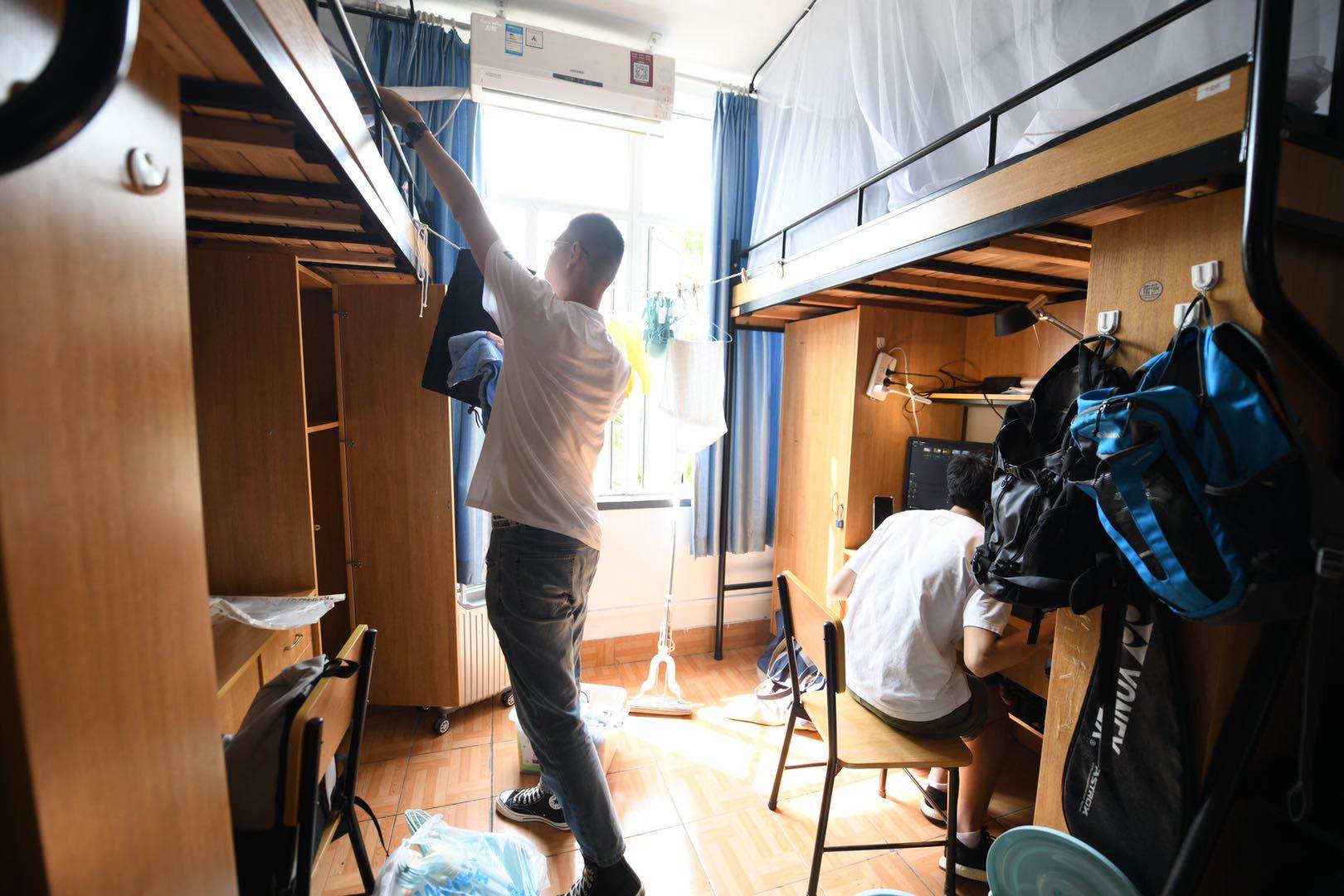 记者在西北三楼宿舍看到,新生们自己铺好床铺,装好蚊帐,整理好个人用品,宿舍被收拾的井井有条。