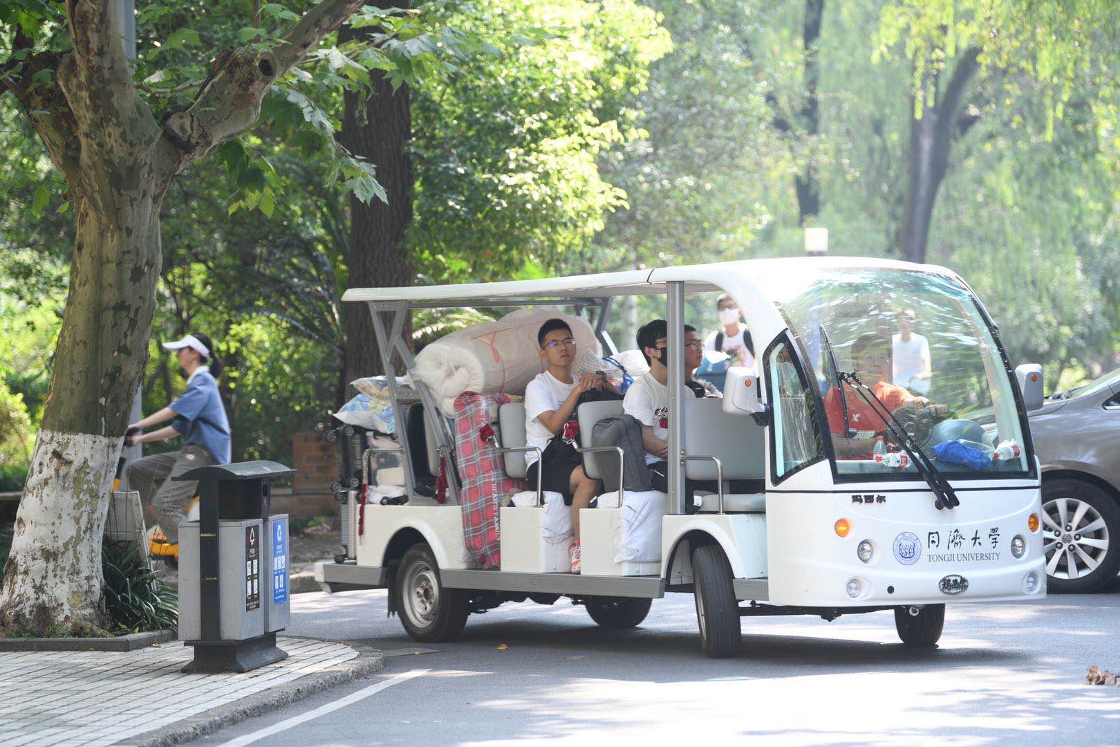 记者从同济大学了解到,因为疫情关系,家长无法入校,学校安排了无人车和志愿者为新生运送行李。学校还在两个校区投放了100辆行李小推车,学生可以自助式借还。此外,志愿者小红帽全程相随,为新生解决各类疑难问题。