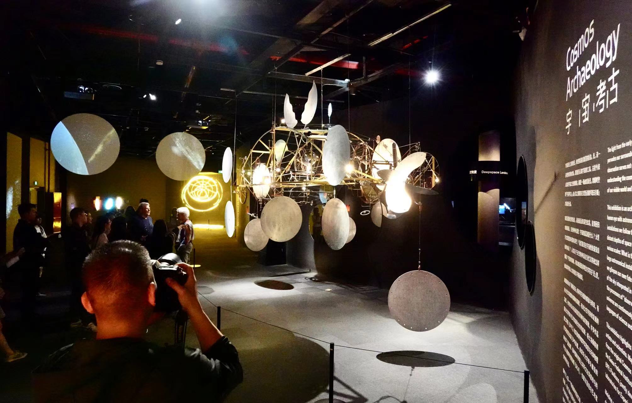 头图为“宇宙考古”展览中的艺术装置。劳动报记者贡俊祺 摄影