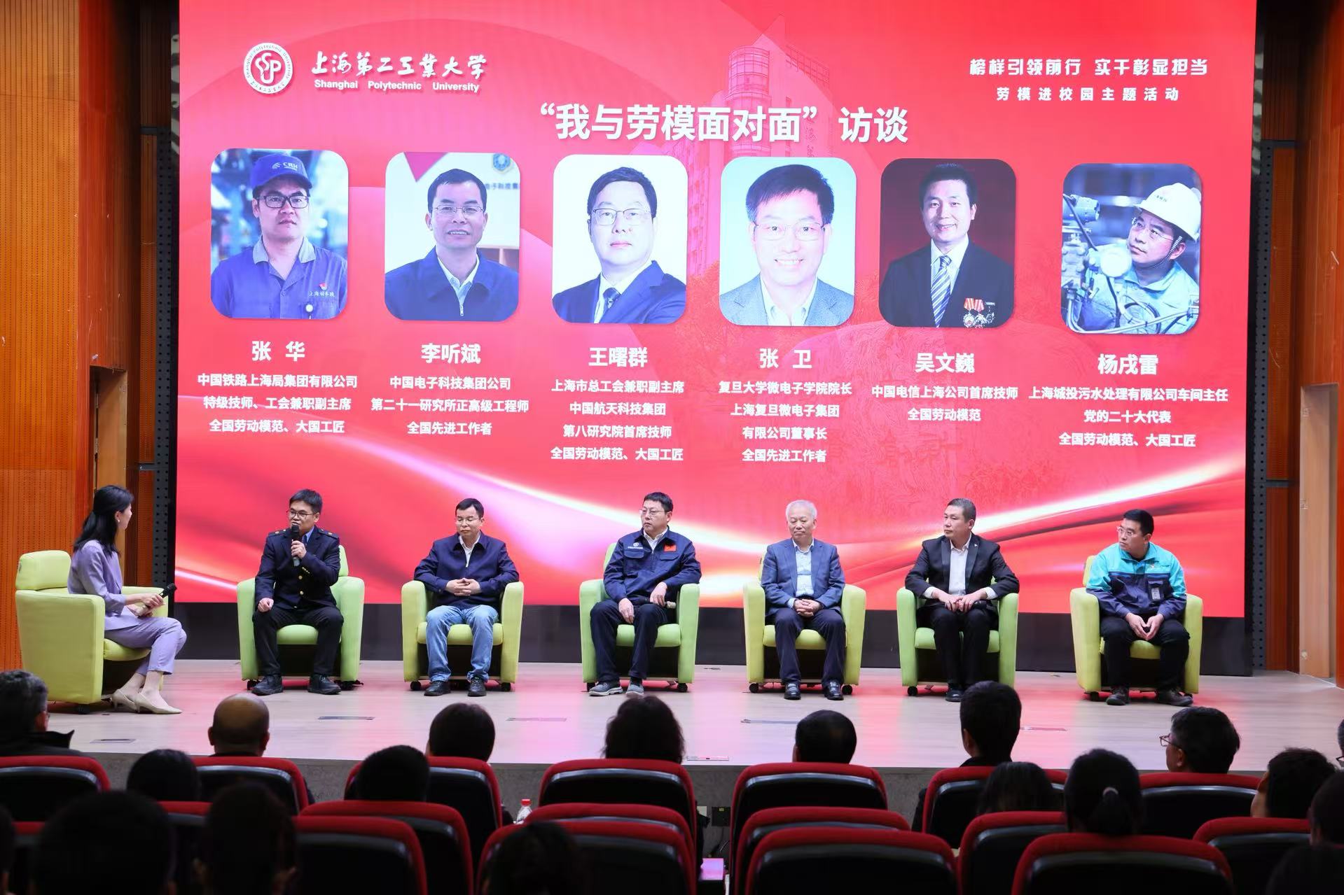 4月23日下午,上海第二工业大学“榜样引领前行 实干彰显担当”劳模进校园主题活动举行。来自航天、科技、通信、环保、交通等领域的六位劳模走进校园,与师生面对面交流,共话奋斗历程、传递匠心精神,带来一堂直抵心灵、催人奋进的思政大课。
