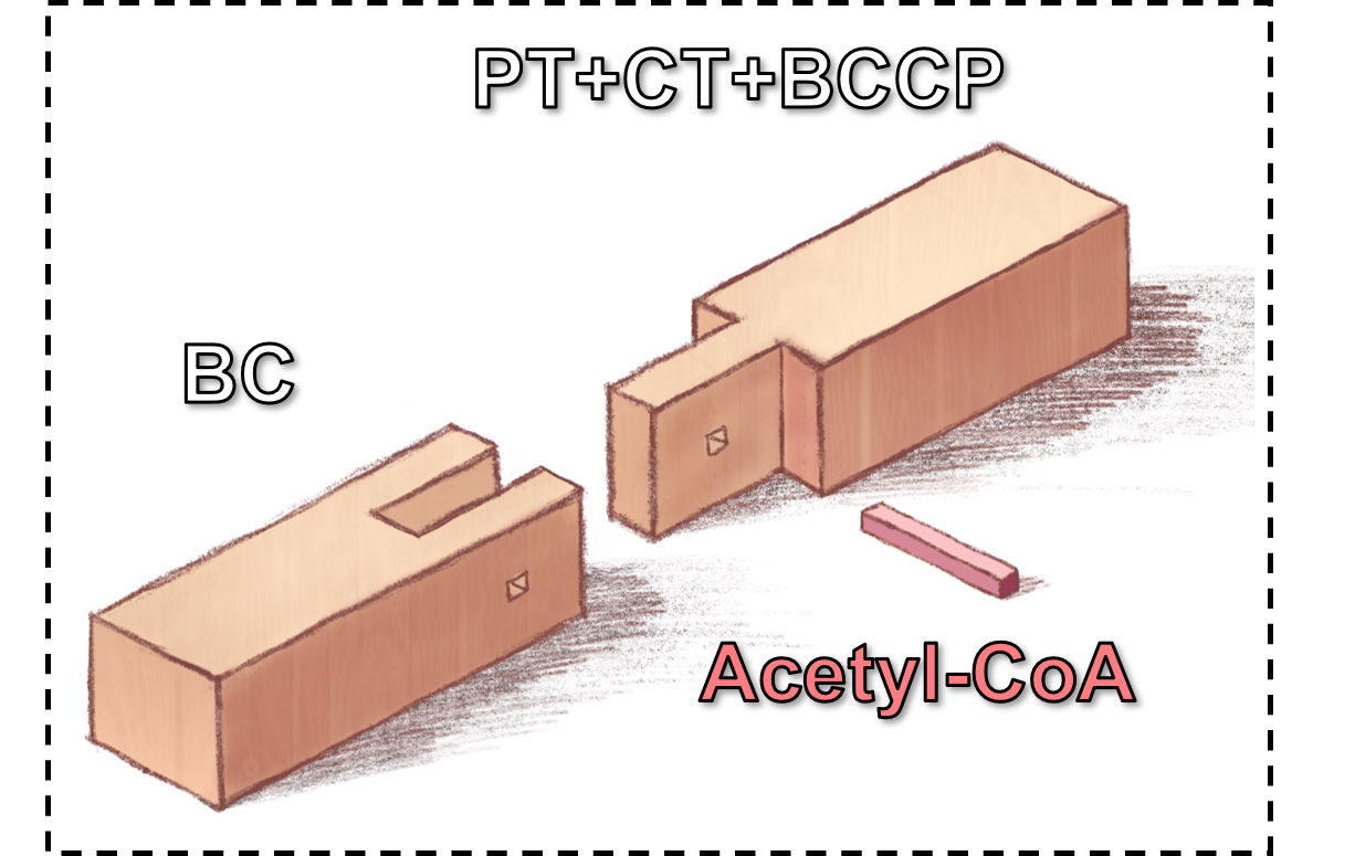研究表明,乙酰辅酶A在生物素羧化的稳定结合中起着中介作用,并有助于形成生物素羧化和PT-CT-BCCP更稳定的结构,乙酰辅酶A在丙酸羧化酶催化转化过程中降低了活化熵并诱导了更有序的热力学构型,这是以前的晶体结构研究无法解释的。