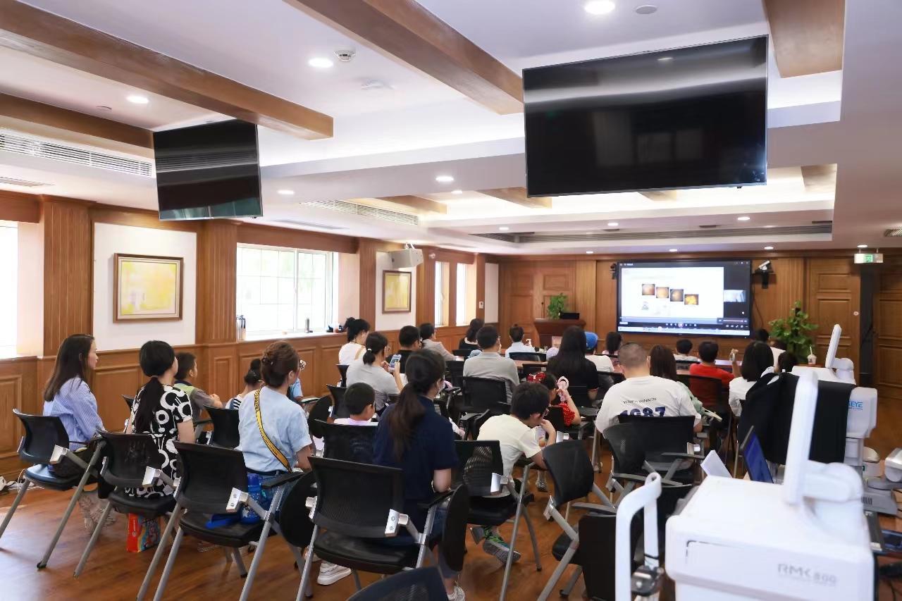 上海市眼病防治中心(上海市眼科医院)眼科中心邹月兰副主任医师以“防治近视——中医耳穴压丸来助力”为主题,结合中医特色治疗眼病特色为大家科普了近视防控知识。同时,现场医护志愿者还为“小小医生”们提供了中医“耳穴压丸”特色技术体验,让“小小医生”感受中医治疗的魅力,增强爱眼护眼意识。