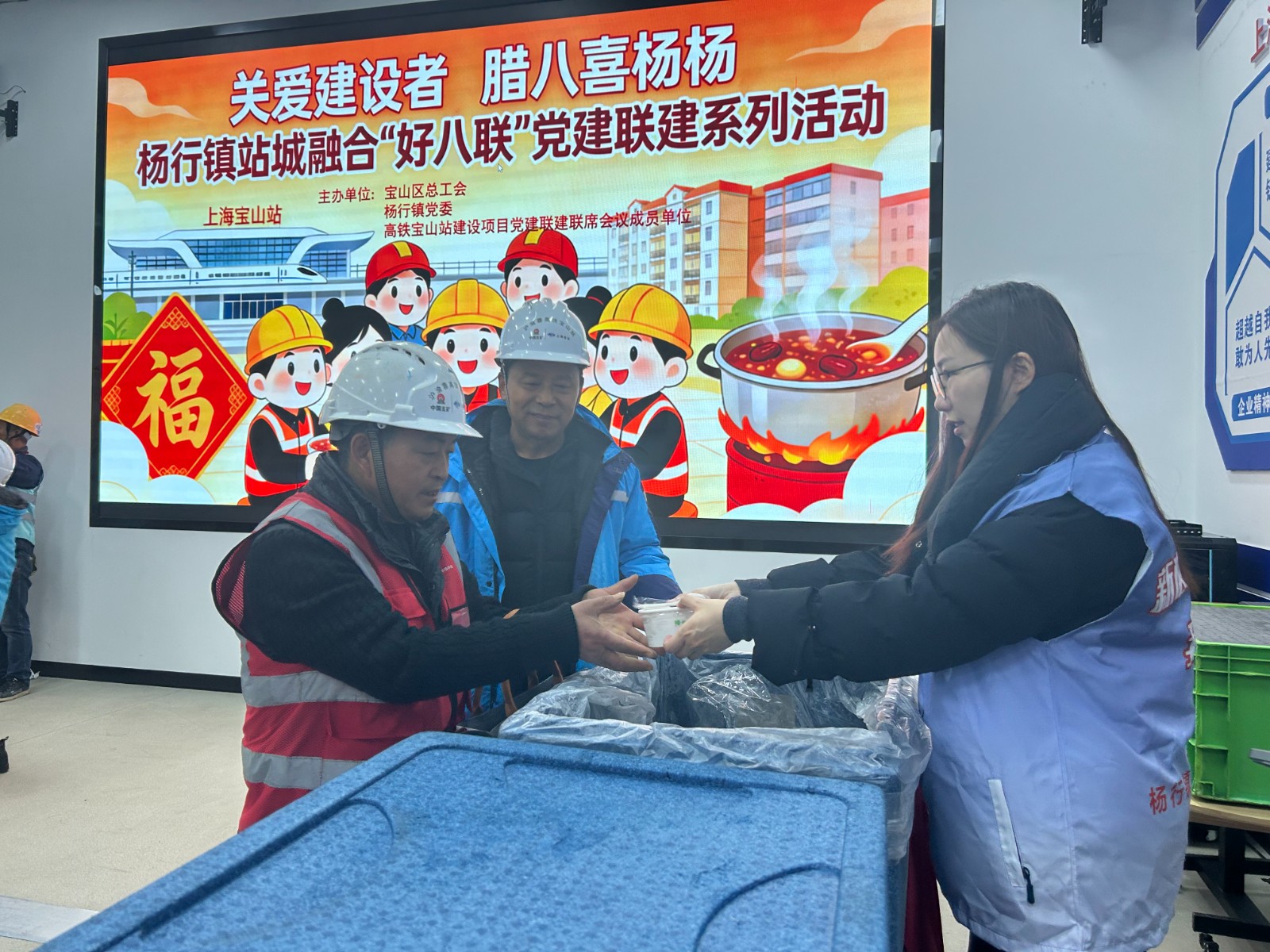 热粥进工地 年味到一线——宝山工会腊八节关爱户外劳动者