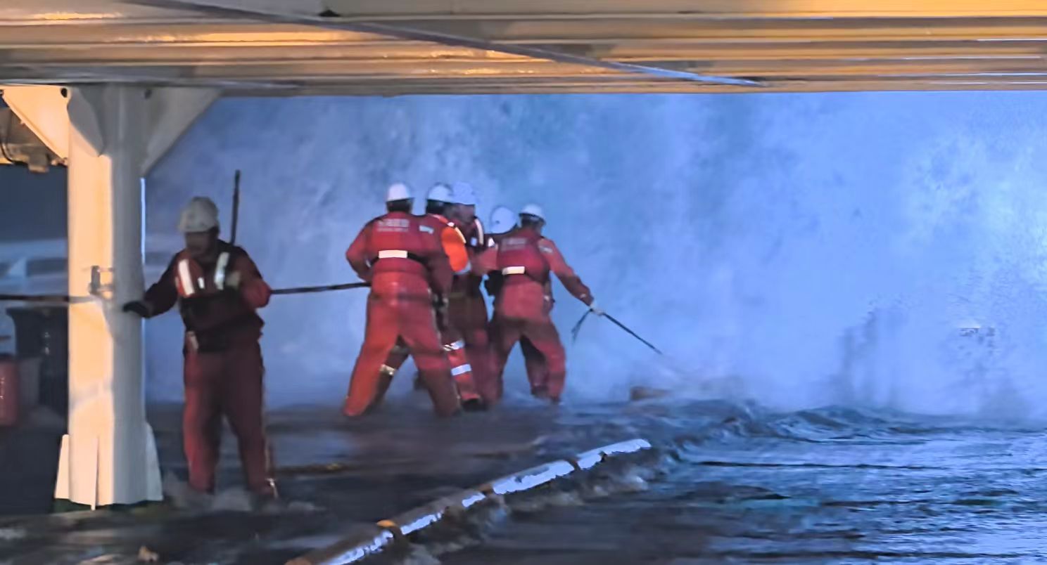大风寒潮中,“东海救113”轮顶风冒浪成功救助15名遇险外籍船员