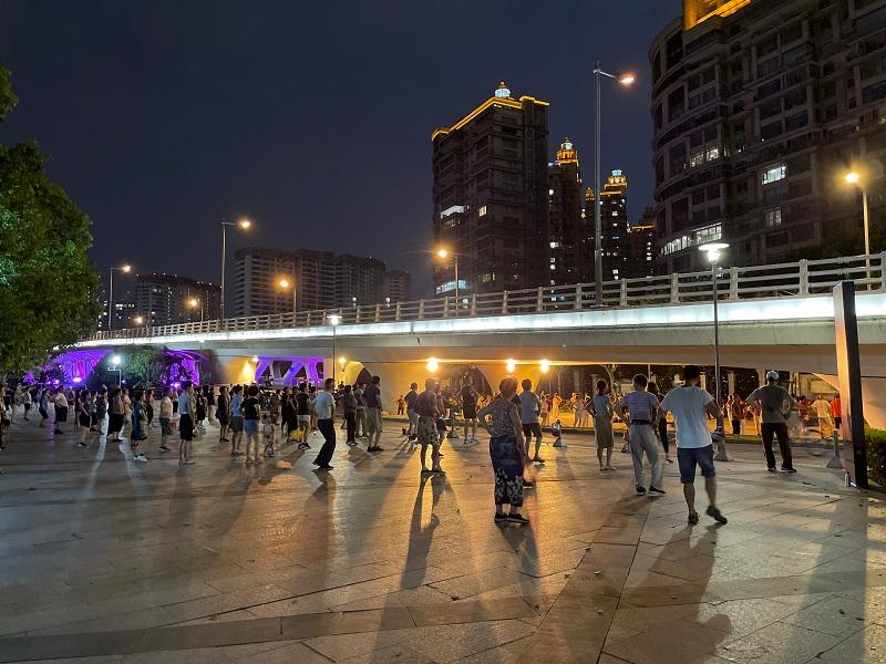 蒋先生告诉记者,阿姨爷叔们跳广场舞的位置离自己居住的小区仅有一条小马路之隔。“每天晚上七点半到把八点半,他们就准时拖着音响在彩虹桥下面集合。人少的时候还好,人一多,他们就把音量调得巨大,吵得人头疼。”蒋先生透露,在徐汇滨江有多支广场舞队伍,分布在滨江大道各个区域,“至少有三支队伍在跳广场舞。因为桥下面的这个地方离住宅区最近,所以影响也最大。晚上回家想休息一下,但一闭眼,满脑子都是广场舞歌曲,甚至台风天都不停歇。”