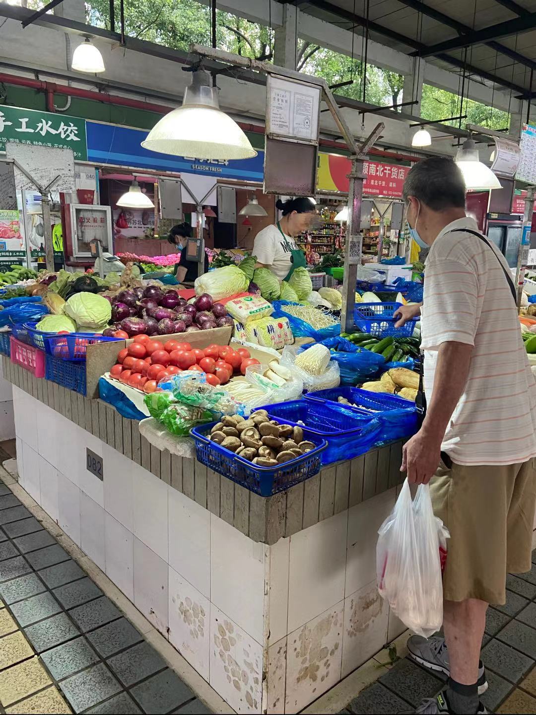 然而记者发现,现场不仅无需登记信息、未配置消毒液洗手液,就连未戴口罩也能顺利进入菜场。记者没有测温、没有登记也没有出示健康码便顺利进入菜场。