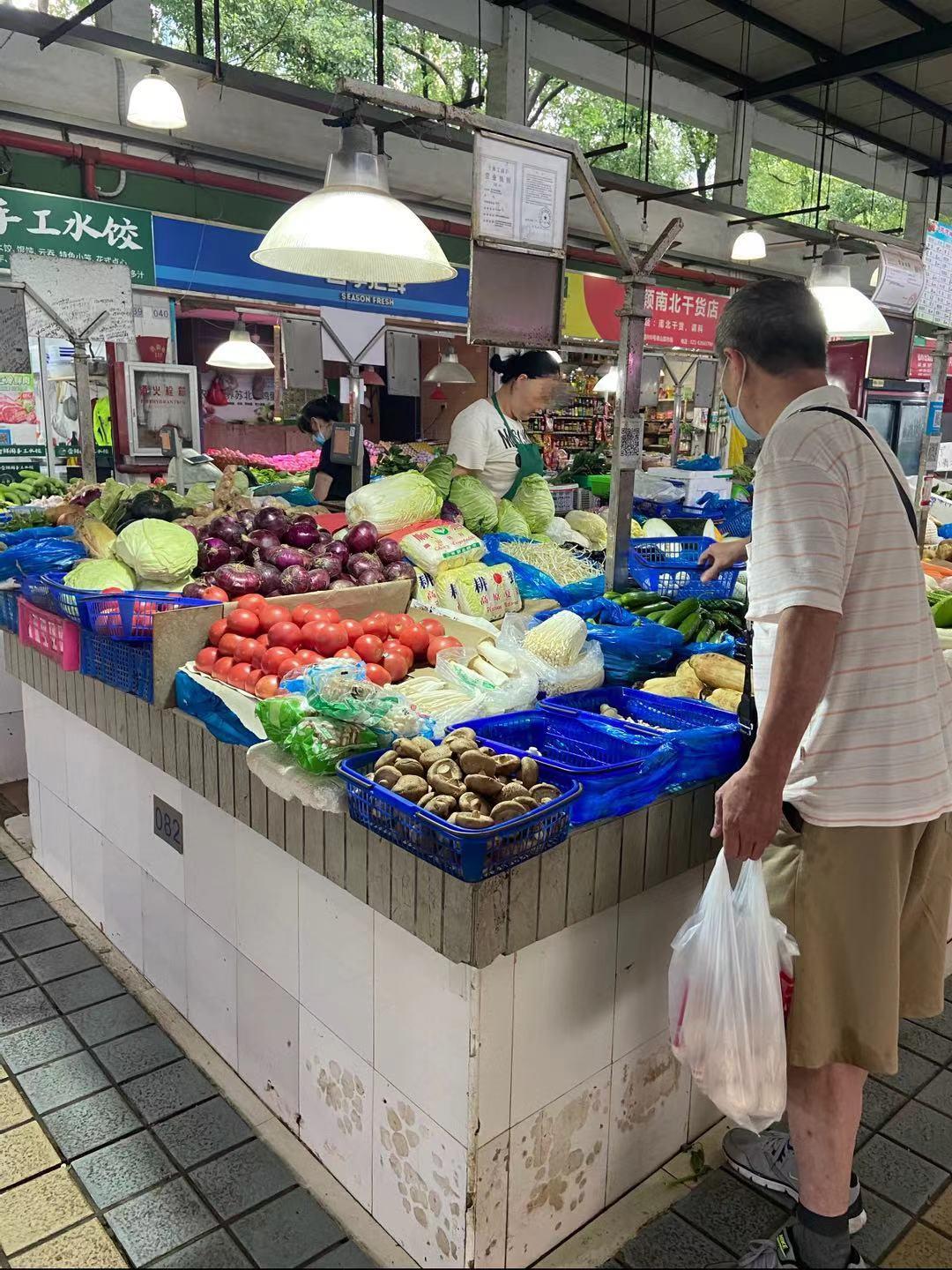15分钟内,先后有多名市民和工作人员进入市场,同样无人主动扫码,也无人测温,而且部分进入市场的人还没有佩戴口罩。更有少数顾客进入市场后,先将口罩拉到下巴处,与他人交谈时也没有保持安全距离。