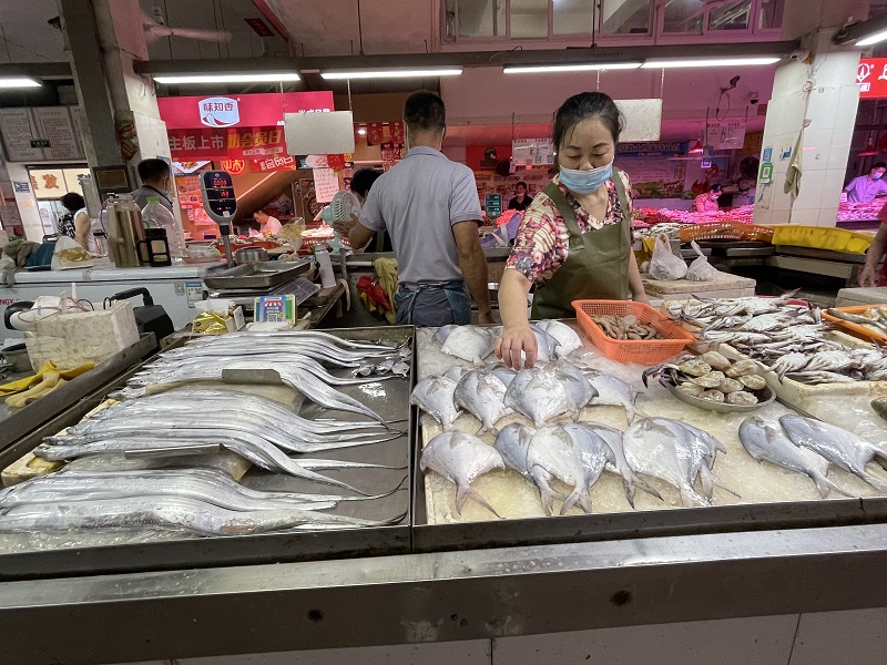 “14块洋钿。”在康兴菜市场1楼经营了十几年水产摊的林师傅爽快地给老顾客抹去了零头。