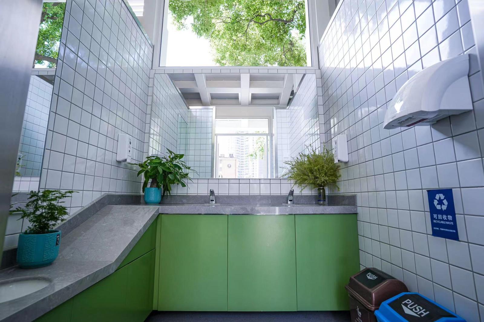 如果说中兴公园的环卫公厕改造是在追求极致,那么徐汇区肇嘉浜路天平路路口环卫公厕适老化适幼化改造,就是乾坤大挪移了。