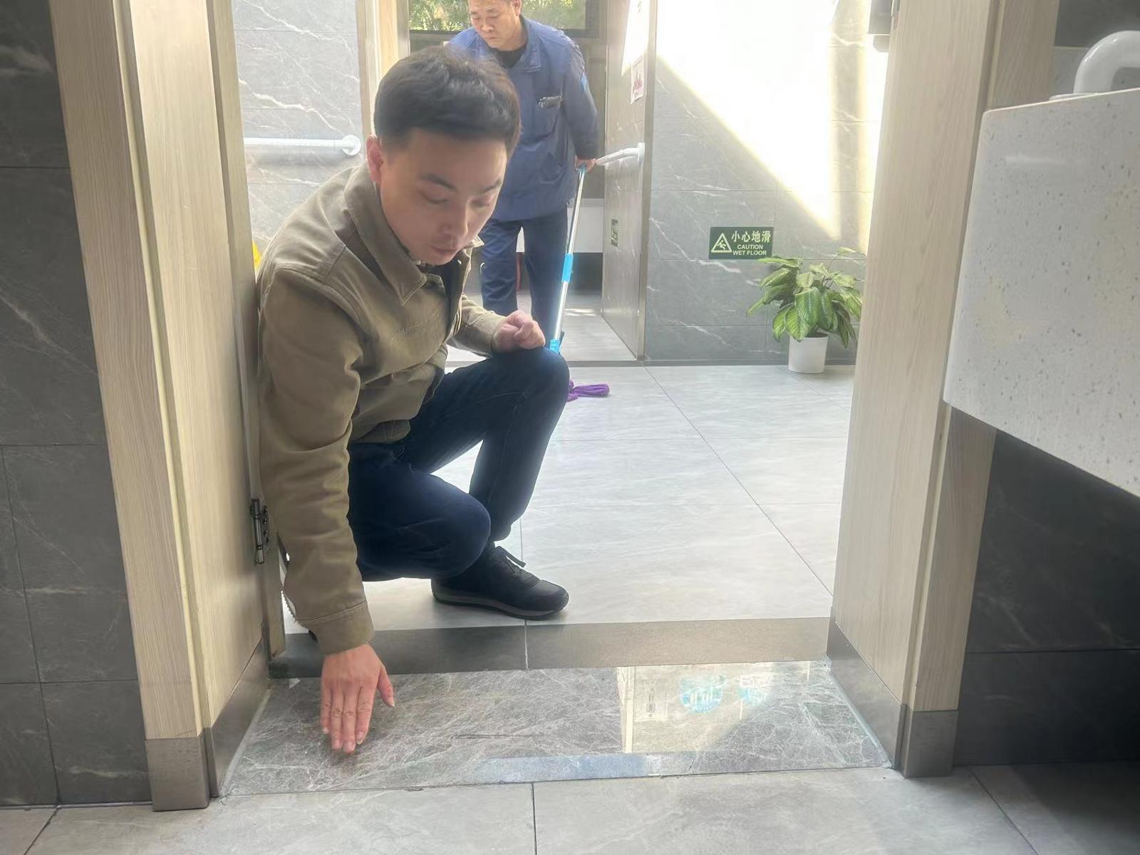 采访中,记者注意到,在进入第三卫生间和男女厕所的门槛处,都有打磨和改造的痕迹。“原先的门槛大概有1至2厘米的落差,考虑到可能会绊倒好动的小孩以及行动不便的老人,此次改造中全部被磨成了平滑的斜坡。”静安区绿化市容局环卫科副科长宋斐斐解释称。