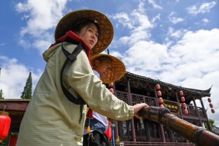 一头顾着平稳行船,一头顾着照看游客,劳心费力程度可见一斑,蒋卫中却乐在其中。展示长期摇橹掌心磨出的老茧时,蒋卫中颇有些自豪地说,“看,这就是劳动人民的手。”