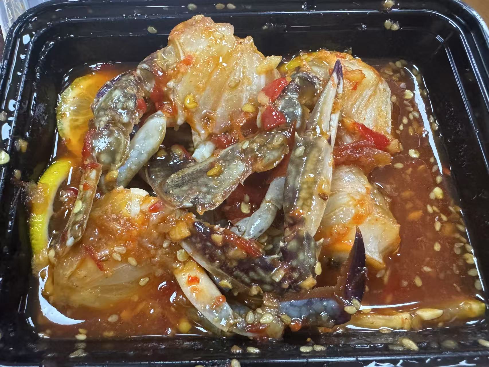 随后,记者又来到普陀区“翰顺·横县鱼生·顺德鱼生”门店,这是一家没有堂食、专做外卖的餐饮店。菜单显示,这家店除了鱼生,还售卖“泰式生腌无皮虾”“生腌蟹块”等食品。现场,记者随机点了一份“正宗泰式生腌蟹块”。