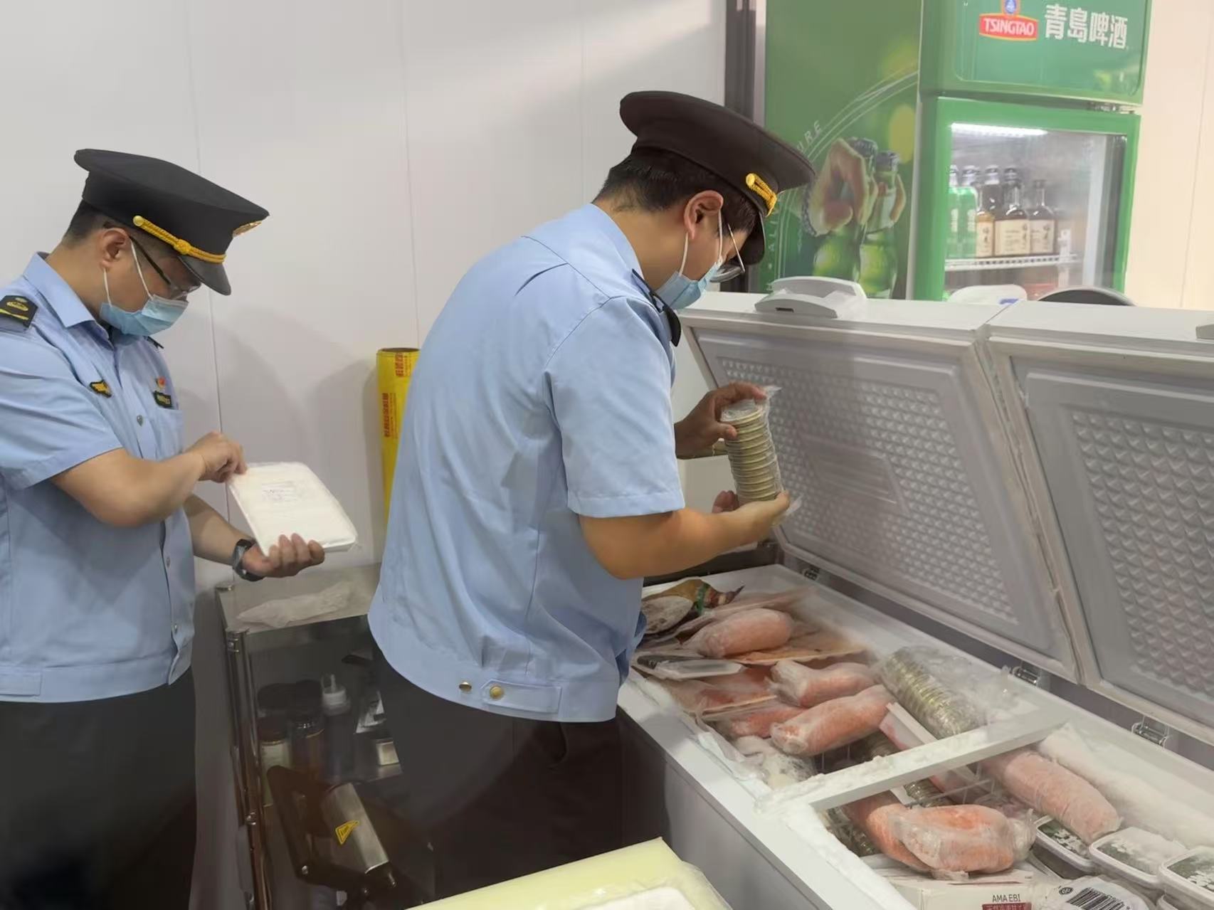 近日,劳动报记者跟随静安区市场监管局曹家渡市场监管所执法人员,来到位于静安区安远路上的这家“海之缘三文鱼”门店。在出示“检查码”,打开执法记录仪后,属地市场监管部门对该门店进行了触发式检查。