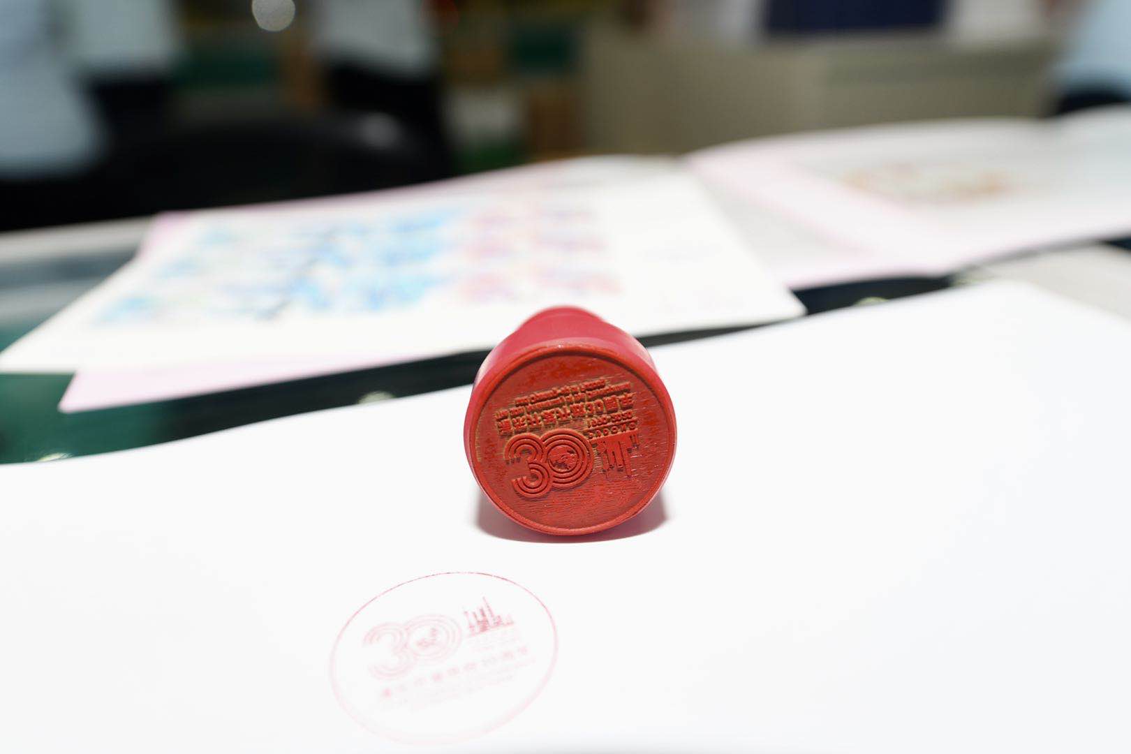 记者发现,今天的网点除了提供邮票销售外,现场还有一个特制的邮戳章。上面印刻了纪念浦东开发开放30周年的文字,并配上了标志性的陆家嘴建筑群。红色的邮戳盖在白色的首日封上,颇具纪念价值。