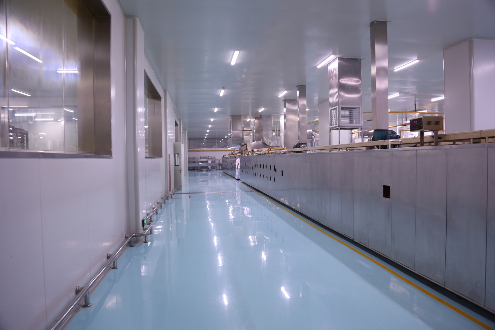劳动报记者注意到,每条冗长的“隧道炉”前后分为2段,第一阶段烘烤后,经中间区域开始扫刷蛋液,尔后再进入“隧道”完成烘烤。