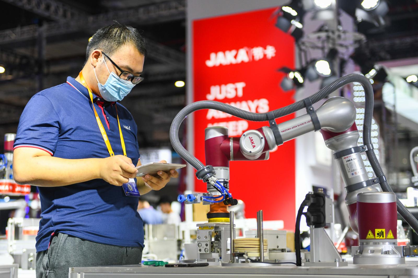 在工业材料、关键零部件和装备方面,国产设备正在迎头赶上。上海机器人的代表企业——节卡机器人,也是本次工博会的亮点企业。在该品牌展台,20多台机器臂将同台作业,展示从人机协作到人机共融的工作场景。作为协作机器人革新领导者节卡机器人已抢占此轮技术制高点,展台负责人介绍,在传统工业机器人领域逐步取代人类完成单调、重复性高、危险性强的工作时,协作机器人开始成功应用至各工业领域。当前阶段,已经实现协作机器人与人混线生产。随着机器人智能水平的提升,下一阶段将实现人机共融。据了解,节卡机器人将携All-in-one共融系列协作机器人等新品亮相本届工博会。