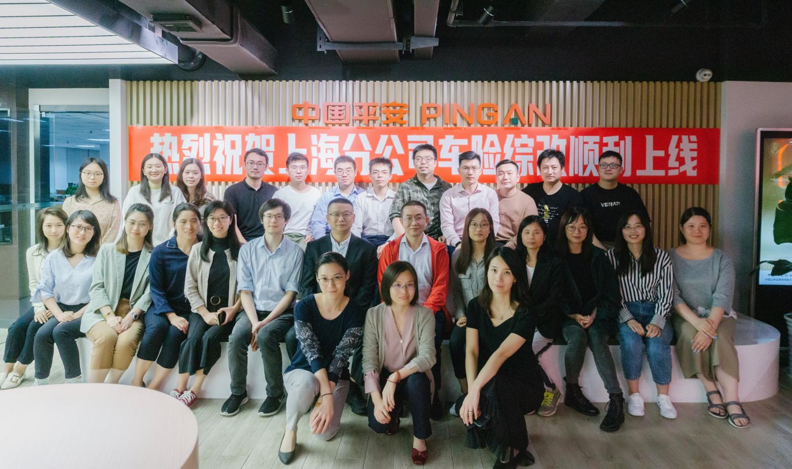 (图为平安产险上海分公司顺利完成车险新系统上线合影)