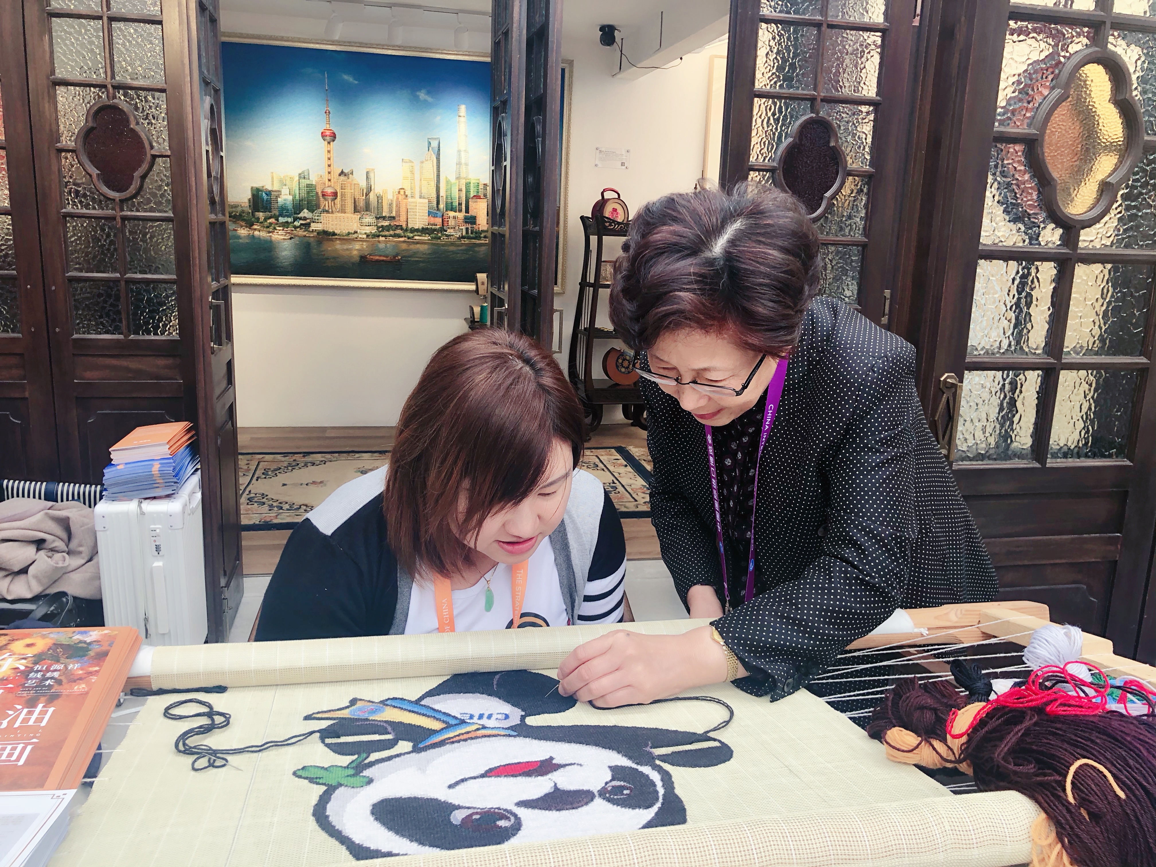 在2019年第二届进博会上,当时,李蔷作为国家级非遗传承人,以进口博览会的吉祥物主体形象大熊猫“进宝”为参考,现场为进博会绣制作品《进宝》。在其手把手教授下,劳动报记者曾与其一同共绣《进宝》。