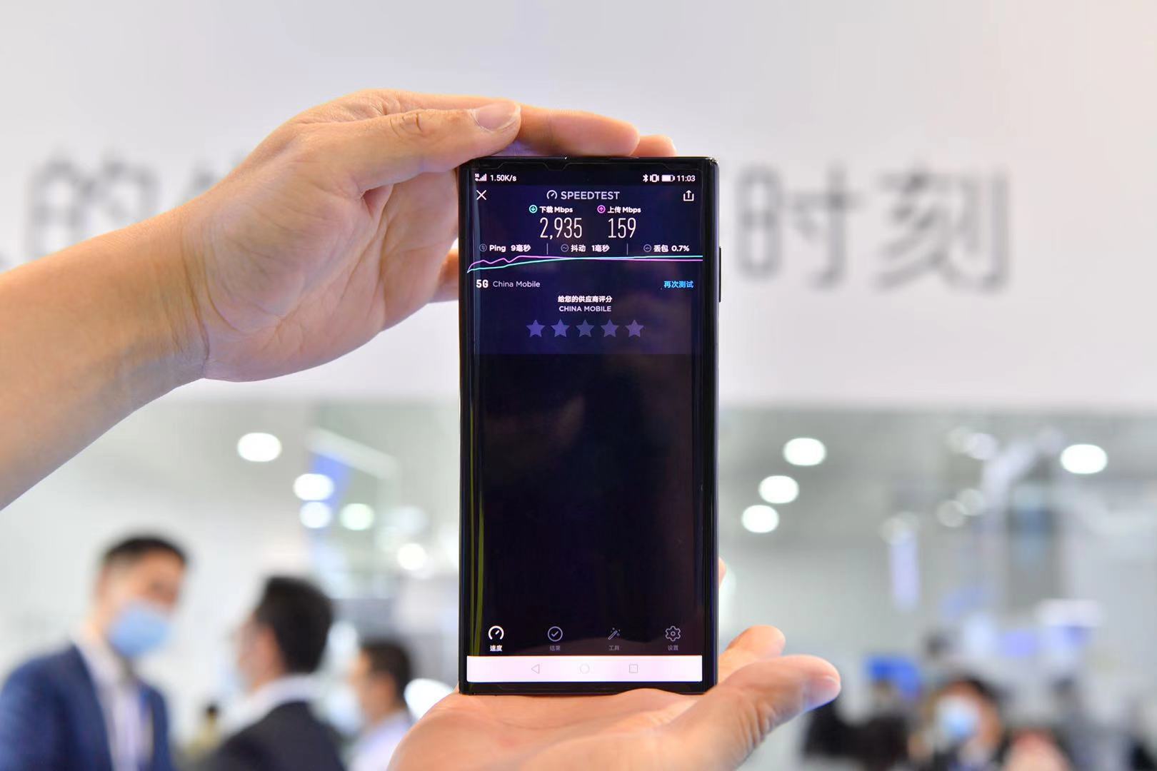 通过5G测试终端可以看到,其上下行峰值速率分别较去年提升228%和200%(可达到:上行70Mbps->230Mbps,下行1Gbps->3Gbps)。