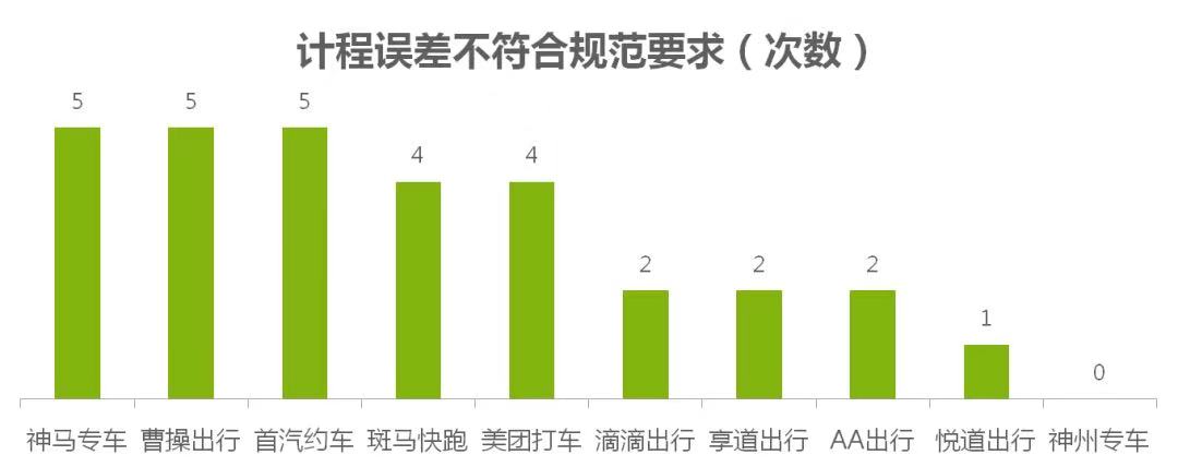 总体来看,110次计程计时中,有30次计程误差不符合规范要求,有35次计时误差不符合规范要求。从对消费者的影响来看,计程正偏差(误差>0)有57次,计时正偏差有40次。
