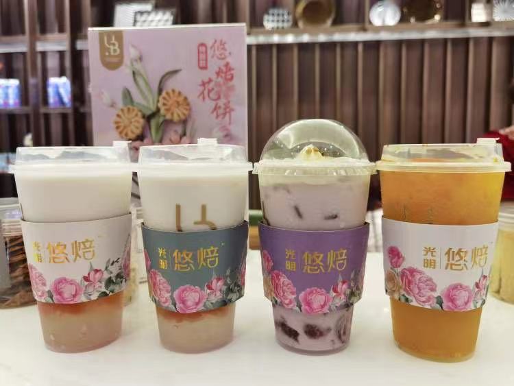 除了上述新品以外,更有英式曲奇饼干礼盒,光明悠焙的花花面包系列、花花酥干点系列、甜点花花马卡龙,以及玫瑰香柠茶、桂花甜橙乌龙茶、日式樱花酒酿、蜜桃酒酿多款饮品。