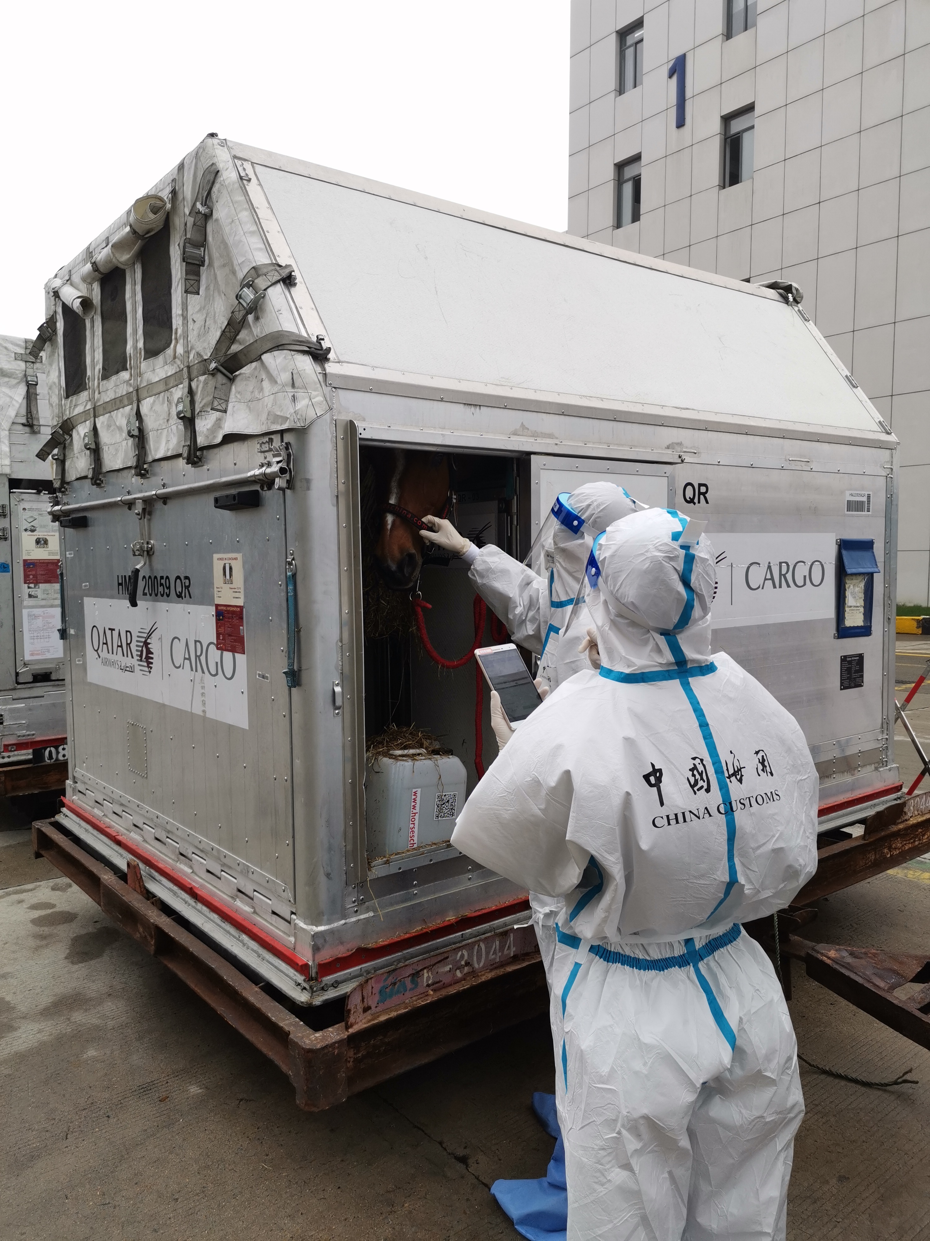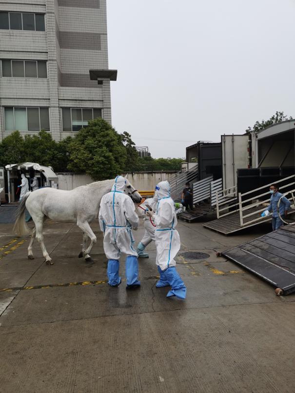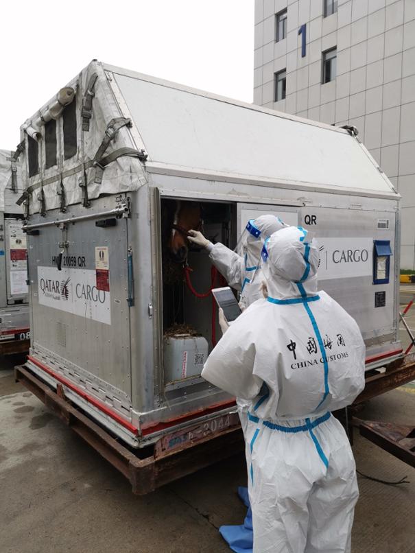 航班达到之前,浦东机场海关通过关企联络员机制,提前获悉抵沪计划,早早地启动了监管预案。联系机场货站,优先安排短驳工具,使马匹在下飞机后即刻短驳至海关监管区域接受海关检疫。