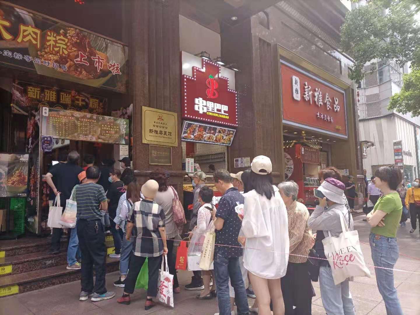 端午倒计时,南京路上飘起阵阵粽香。5月31日,在老字号新雅粤菜馆前,“粽娘”胡小莲现场包制黑毛猪大肉粽,3片粽叶、添入一把糯米,再平铺上4大块黑毛猪肉,盖上一层糯米,绕线8圈制成一枚“枕头粽”。高峰期,仅黑毛猪大肉粽一个单品的日均销售额就能达到10万元以上。除了新雅外,南京路上老字号沈大成、邵万生、三阳的新品端午粽都已进入旺销期。