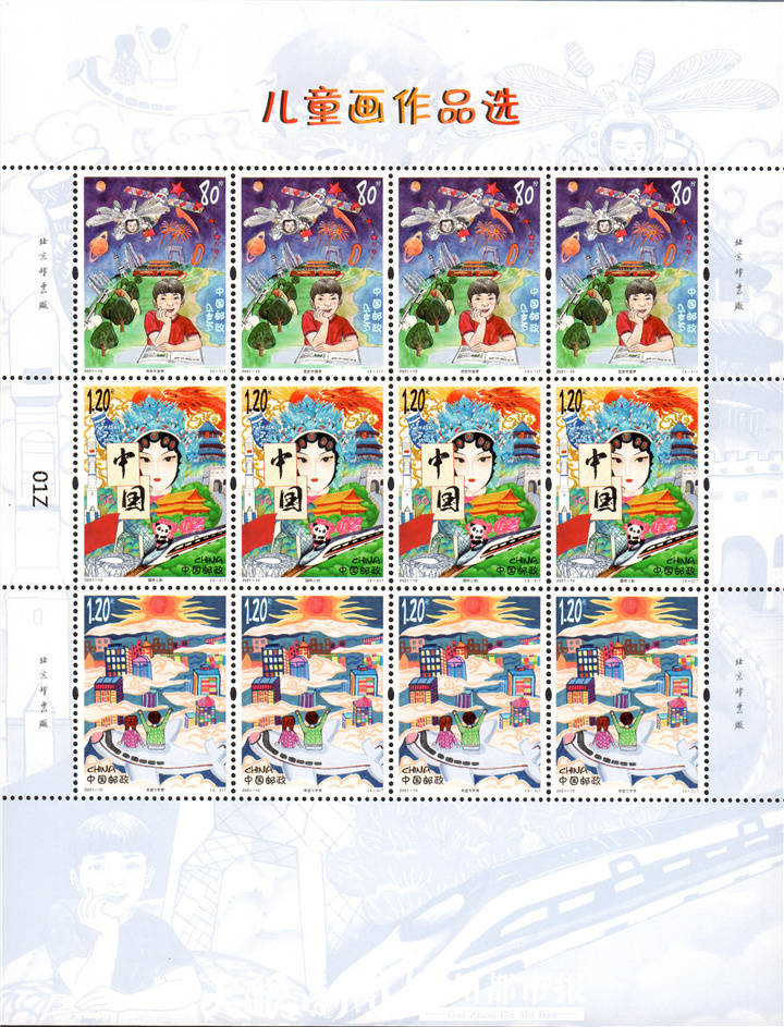 6月1日上午,中国邮政发行《儿童画作品选》特种邮票一套3枚。