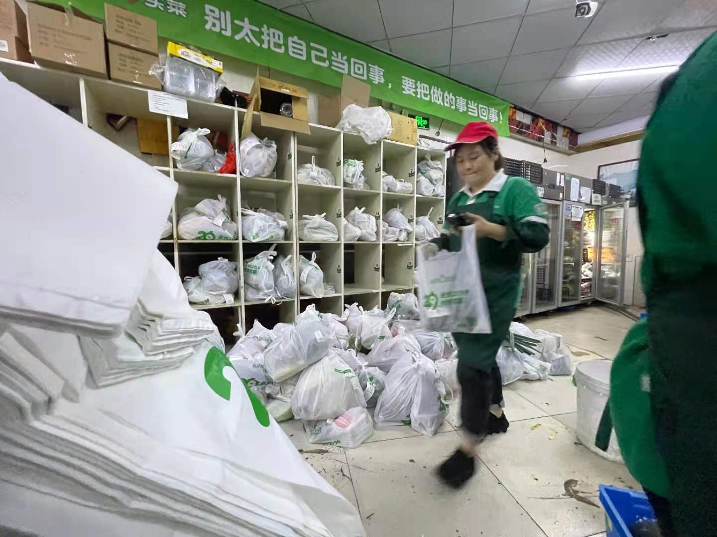 除了江桥市场外,考虑到风雨天,市民的“宅”需求,沪上在线新经济平台在风雨天气也选择注重安全的同时,实现“一日两配”,保障供应充足。