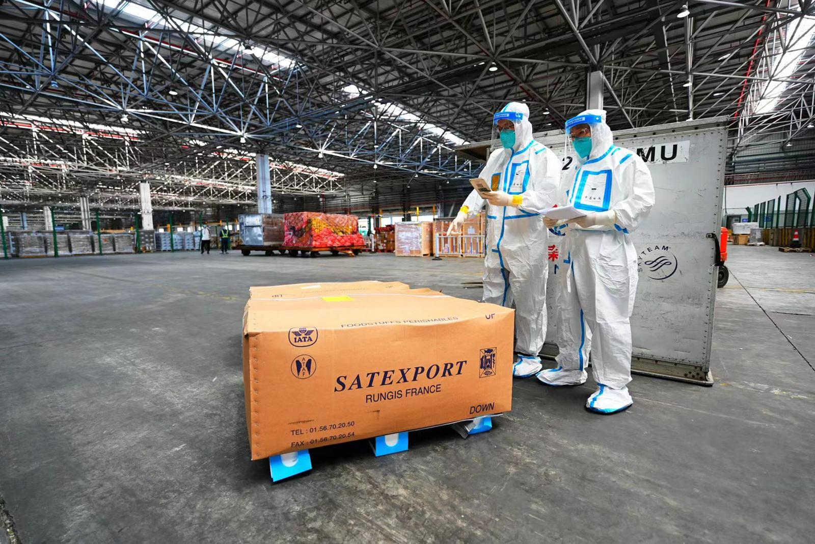 10月28日,第四届进博会首批空运进境的198千克欧洲苹果,在上海浦东国际机场口岸完成海关通关手续。