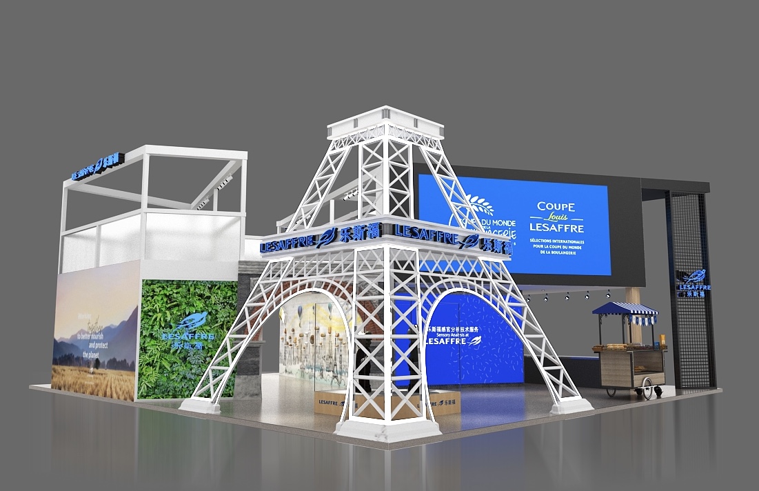 今年恰逢是法国酵母巨头乐斯福进入中国的第40个年头,这家进博会的“四朝元老”特意在展台中搭建了6米高的埃菲尔铁塔局部模型,而在塔底是“东方明珠”造型的艺术面包。