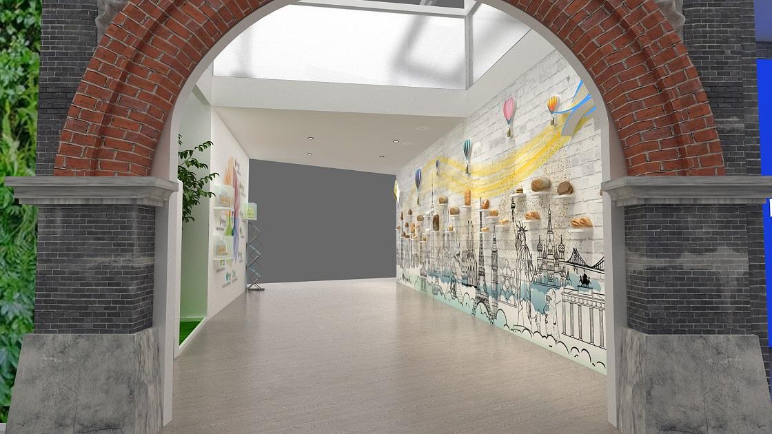 观众穿过铁塔,又可以直接走进石库门弄堂。在那里,有一面世界面包展示墙。墙上有世界30多个国家地标建筑的手绘图,每一个建筑的旁边,则是来自乐斯福专业烘焙师制作的当地特色面包。观众可以在这里拍照打卡,还可以扫描墙上的二维码获得这些面包的详细介绍,充分领略世界每个角落的烘焙技术和文化。