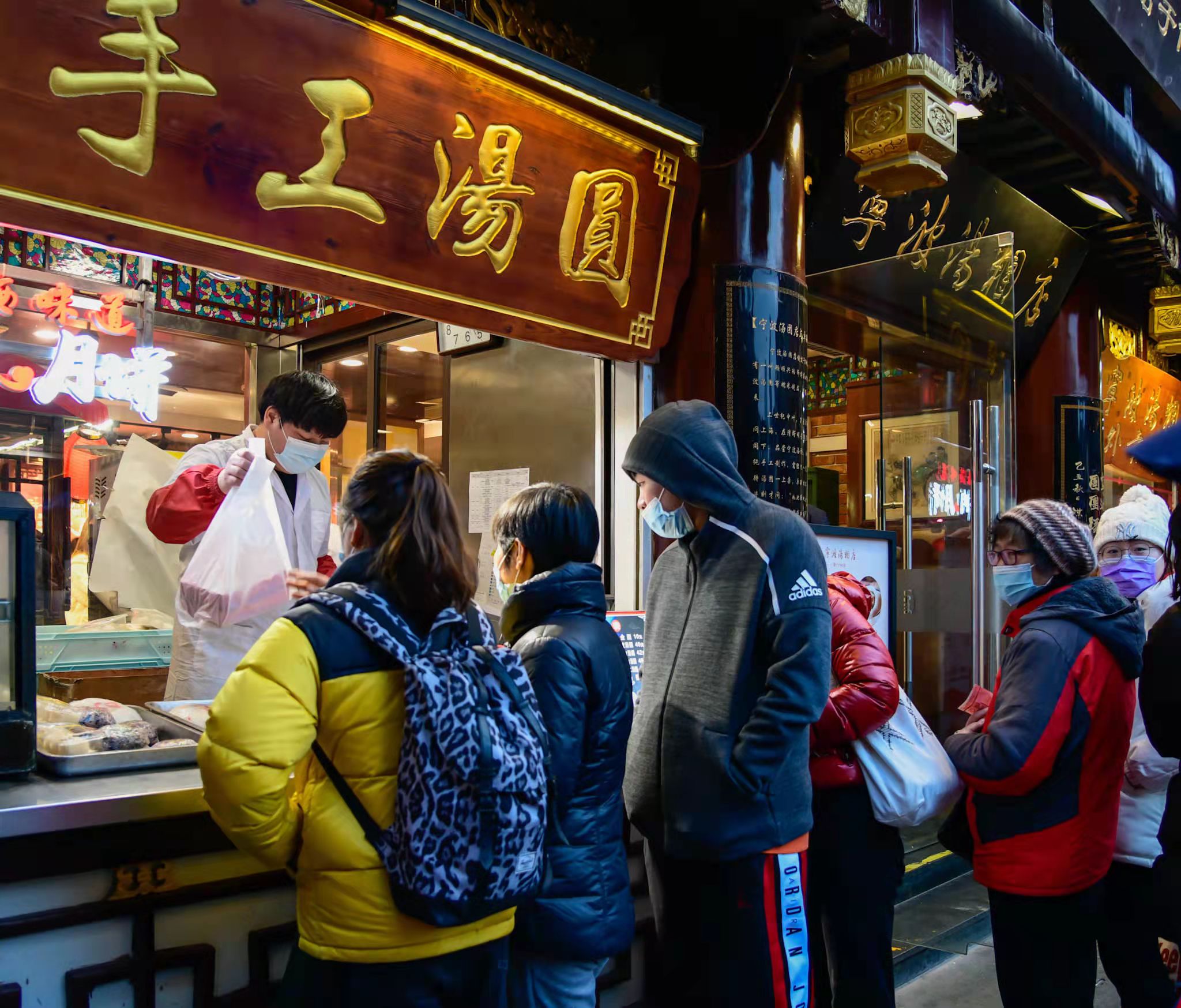 “左右开工,左手揪起一撮面皮、大约12克,右手捏一块黑洋酥馅芯大约6克。馅芯添入面皮,左右拿捏,搓圆了,就成了一个汤团。”在77岁的豫园老字号宁波汤团店里,传承人徐正留给劳动报记者讲解了“5秒手作一枚汤团”的技艺。正月十五临近,汤团一天能卖8万只,可谓是人气单品。