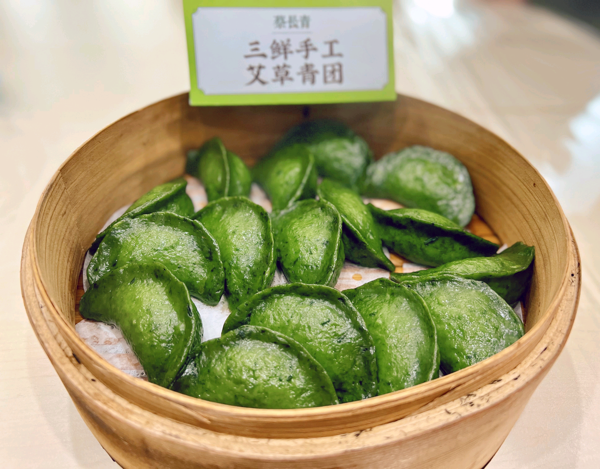 “春天是踏青、郊游的好时节,青团也是非常适合作为野餐小点心的一种吃食。所以今年我们进一步把青团做‘轻’”。欧厚喜介绍,比如“蔡长青X溜溜梅”一口青梅青团,每一个只有硬币那么大。杨枝甘露青团,将年轻人喜欢的奶茶”杨枝甘露“做成了馅芯。春天是滋补的季节,“蔡长青”首创将燕窝也包进了青团。在创新的同时,也没有忘记传统。叮咚买菜还开发了一款“蔡长青”农家手工艾草青团,通过新鲜的艾草调色调味,青团皮里还吃得出艾草叶,馅料选用当季荠菜加猪肉、香菇、榨菜,纯手工包制,形状也是传统的饺子形。