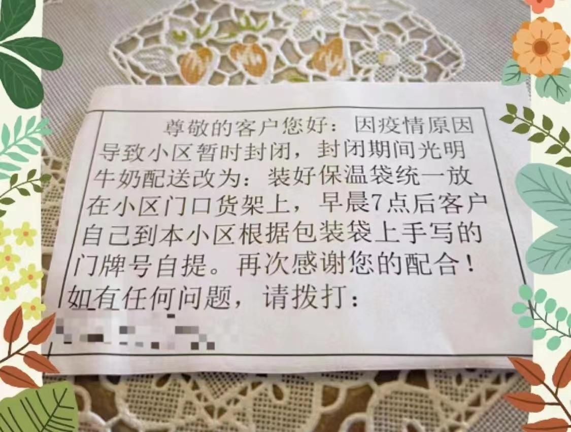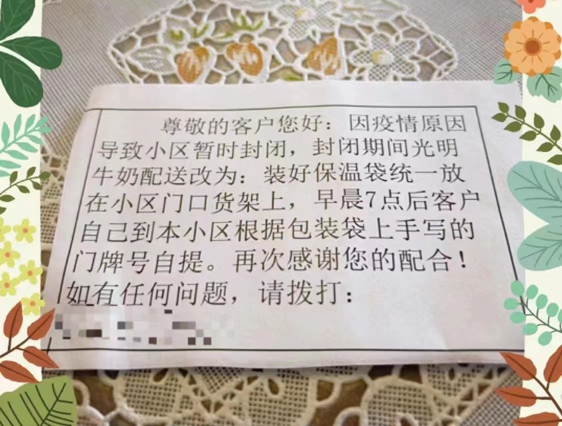 这是近日在朋友圈刷屏的一张照片,这张暖心照片来自于光明乳业。作为全国最大的送奶上门平台,光明乳业旗下随心订平台每天为上海市民配送近100万瓶乳制品,但送奶员被临时管控,让光明乳业的“送奶上门”服务遭遇前所未有的考验。然而,对被临时管控的市民而言,一瓶牛奶代表着一份营养、一份温度、一种习惯。为了兑现承诺,按时将牛奶送达,光明乳业跑出加速度。