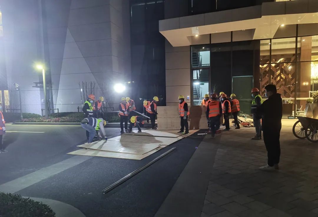 情况紧急!一边需要等待疾控部门到达现场确定具体隔离方案,一边又面临着改造工程基础信息缺乏的实际情况,上海建工装饰集团项目部立即启动突发事件处置预案,成立隔离点改造工程突击小分队,紧急调配50名工人至现场随时待命,同时指派专人完成材料运输协调、施工机具装备等准备措施。