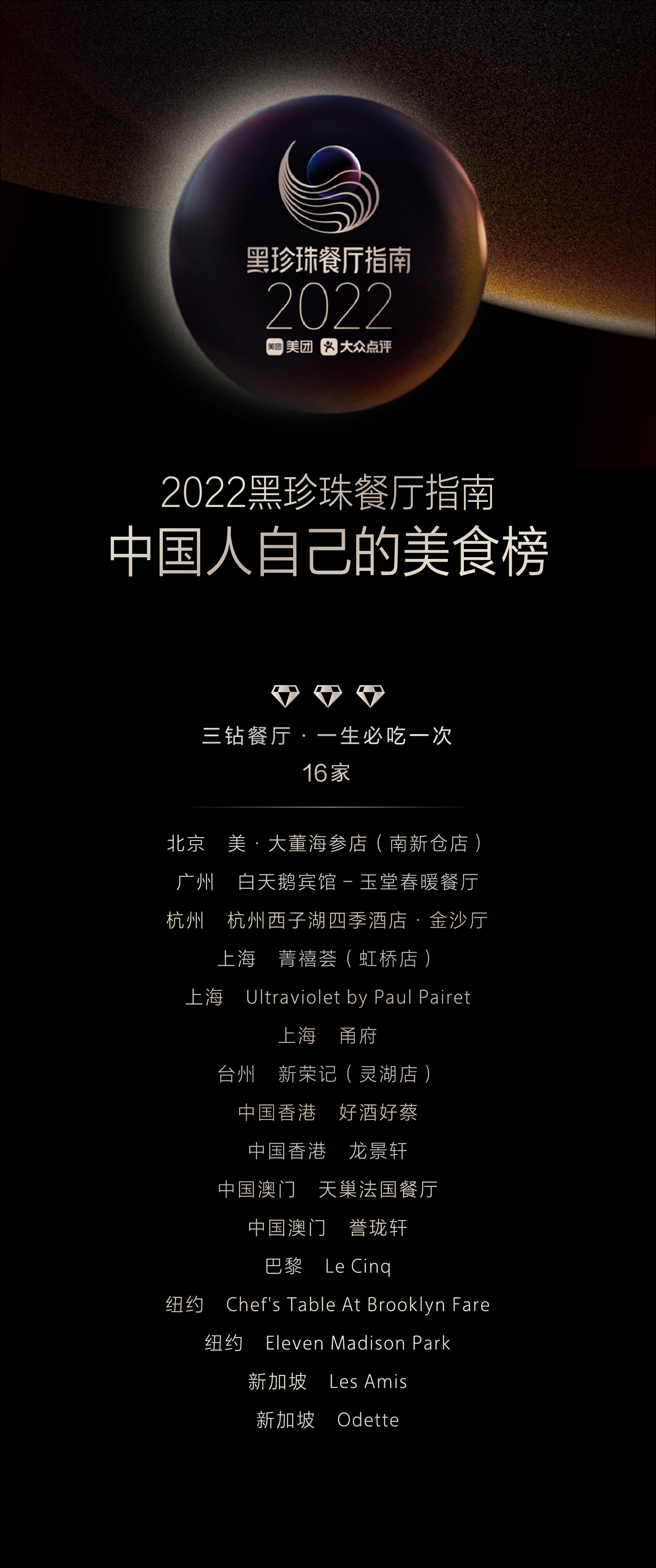 3月31日,最新一届“中国人自己的美食榜”——“2022黑珍珠餐厅指南”(以下简称“2022黑珍珠”)发布,并于美团App和大众点评App上线。