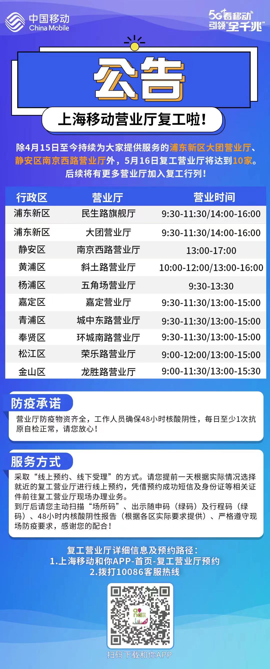 首批10家!上海移动营业厅复工了
