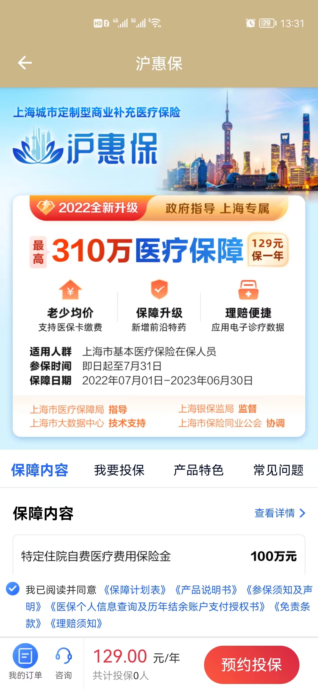 即日起至7月31日,本市基本医保参保人员可通过“随申办”APP的“沪惠保”投保服务页面,为自己、家人(6位成员)使用个人医保账户余额或支付宝、微信、云闪付方式直接支付保费,一键投保。