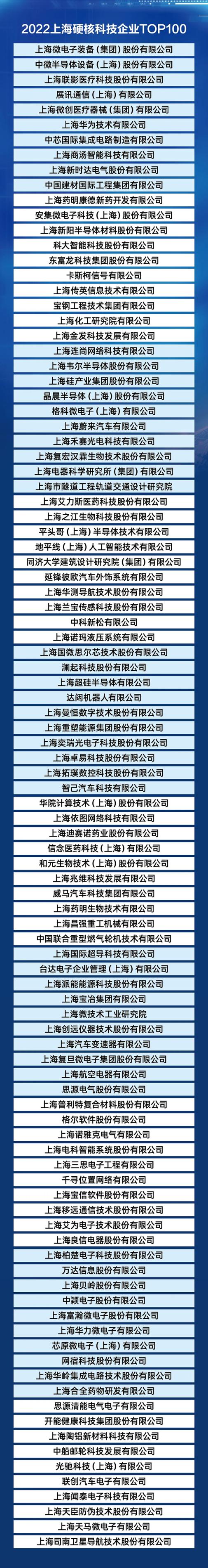 大会现场,市产业技术创新促进会联合市科协、临港集团等单位发布《2022上海硬核科技企业TOP100榜单》。榜单评价涉及1993家企业,涵盖本市国家级和市级企业技术中心、上市公司、新兴产业百强企业、民营制造业百强企业及承担市级重大科技项目的企业等。硬核科技企业主要集中在“3+6”产业体系,属于三大先导产业的企业为53家,属于六大重点产业企业数量为85家,通过主板、科创板等上市的企业数量占比为37%。
