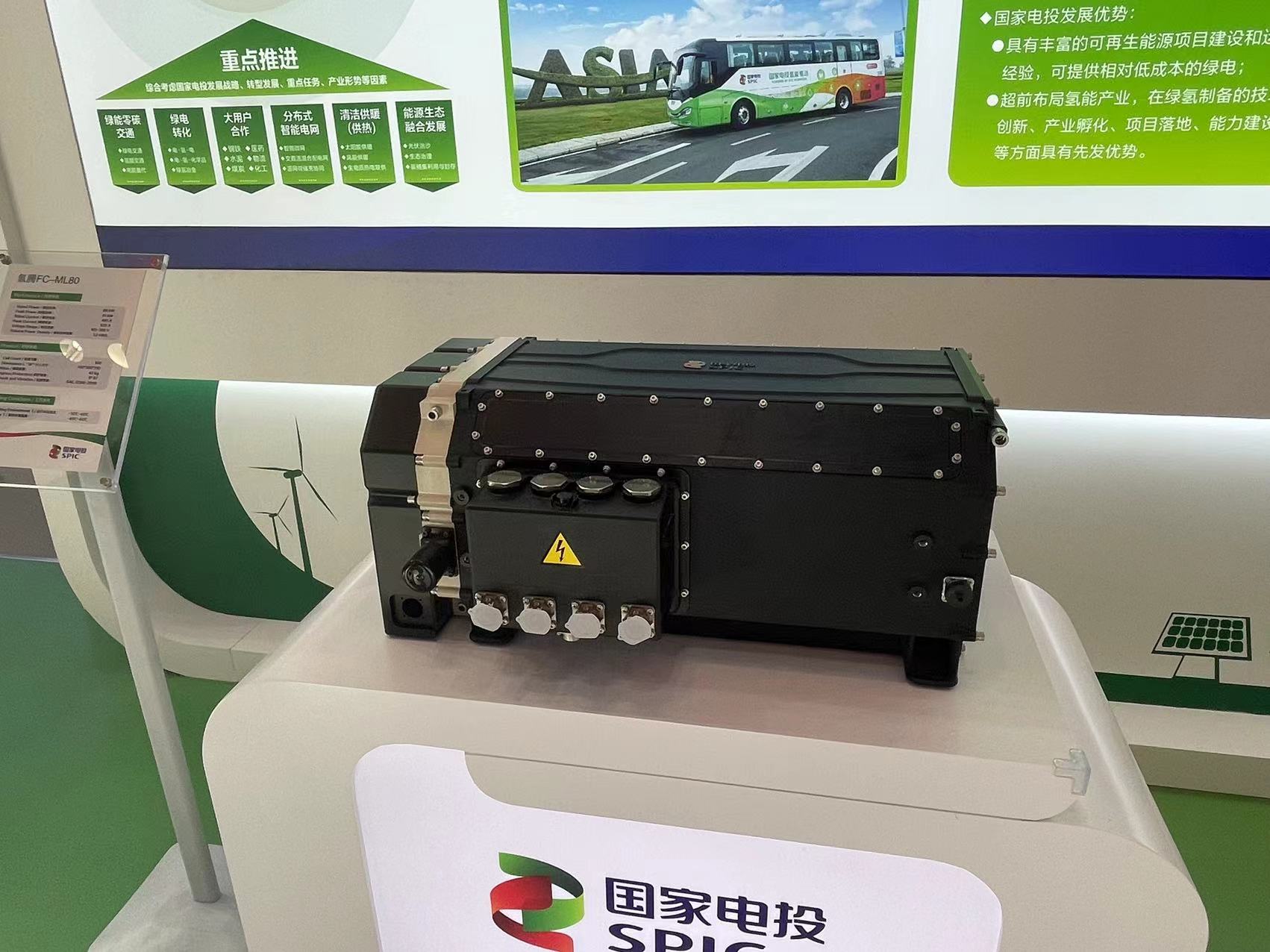 步入位于国家会议中心的综合展区,一个“黑盒子”首先引起了记者注意。据国家电投展台相关工作人员介绍,这是“氢腾”FCS80燃料电池系统,“它输入的燃料是氢气,排放的是水。相较于传统化石能源车辆,搭载‘氢腾’电池的氢能大巴每行驶100公里可减少70公斤二氧化碳排放。”据悉,今年北京冬奥会期间,搭载国家电投“氢腾”燃料电池系统的氢能大巴圆满完成了交通接驳保障工作。