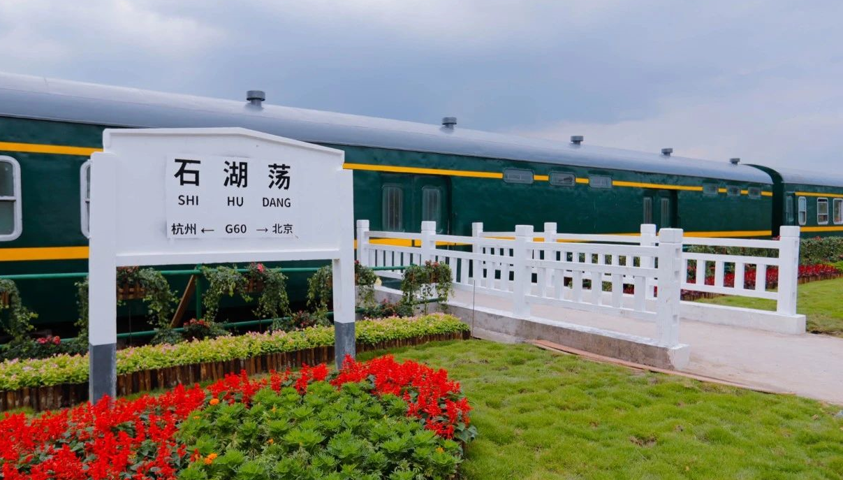 松江石湖荡镇的东夏村,有老沪杭铁路沿线较早的火车站——石湖荡站,如今本地打造的水文化景观“浦江之首”,在景区入口重现昔日火车站牌和绿皮老火车,游客在了解石湖荡的历史与文化的同时,也能在“火车集市”中购买石湖荡本地的农产品和文创产品。