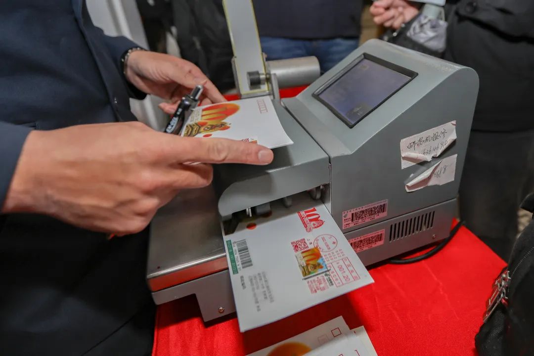 位于苏州河畔的百年上海邮政大楼二楼营业厅发行了第53届世界邮政日纪念封和《上海邮政总局大楼开建一百周年》TS71型、单色邮资机宣传戳各1枚,吸引了不少市民驻足。市民们在现场有序排队进行购买,并敲盖纪念邮戳。