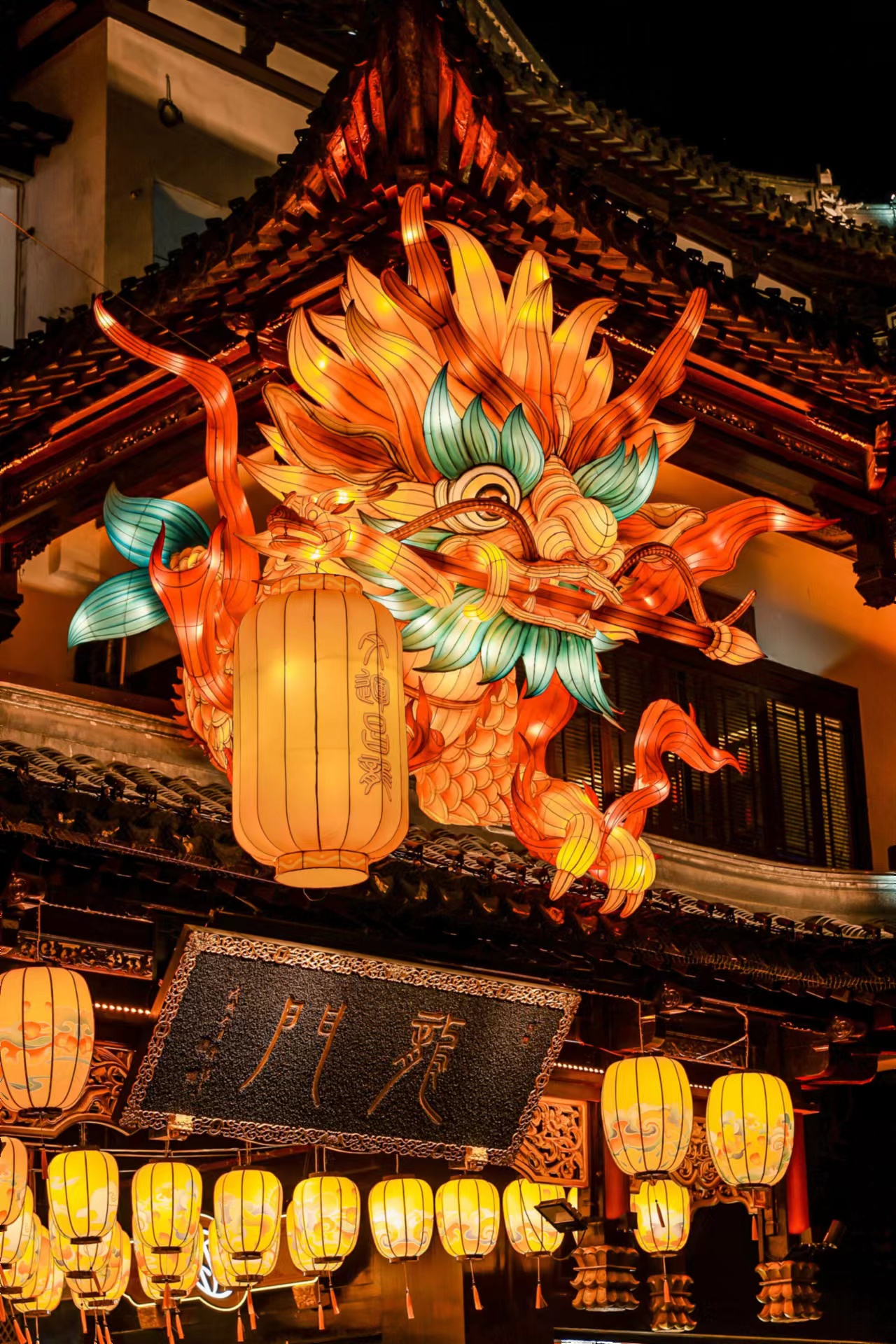 在被打造为“奇豫上博”文化特色街区的豫园老街,豫园商城和上海博物馆这两大文化IP联袂呈现了一个让“文博”活起来的生动案例——蕴含着锦鲤元素的文物在艺术家的重新演绎下,以创意锦鲤灯组的形式,重新焕发生命力。