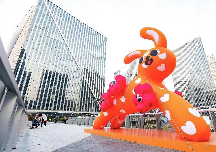 晶耀前滩不仅携手小小儿童艺术家麦大姐共同打造了晶耀前滩节日季萌趣纷呈的节日艺术装置,商场内外皆有由麦大姐原创绘制,寓意幸福的“甜心儿兔 Sweety Rabbit”和象征爱意的“花朵”。晶耀前滩经典IP形象“地球人”以多种多样的装置、美陈形式“现身”于商场的各个角落,为大家带来纯真、童趣的暖心“奇境”。值得一提的是,本次晶耀前滩节日季也是这位小小艺术家的作品展于上海首次落地。