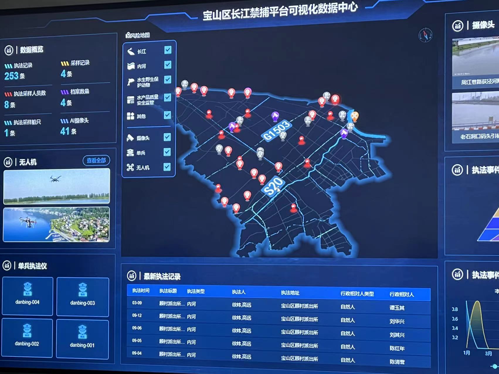 宝山区农委执法大队顾队介绍:“宝山区长江禁捕平台上线以来,已推送下发预警指令12111余条,调度各部门查处涉渔违法案件17起,查处非法捕捞案件170余起。”
