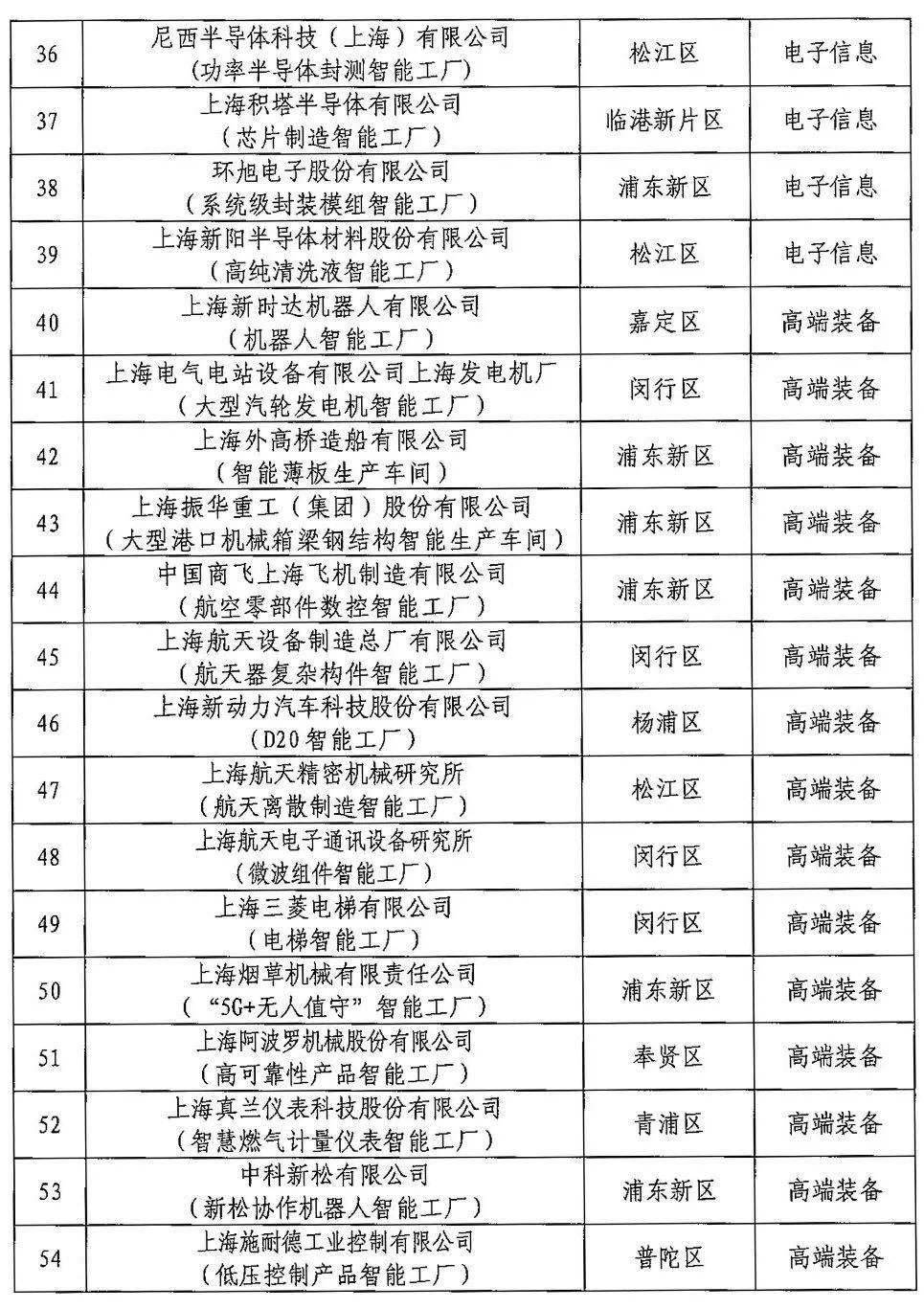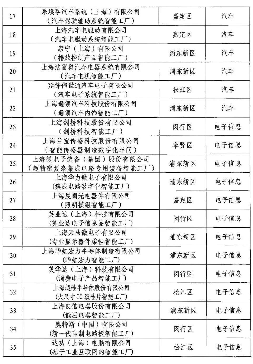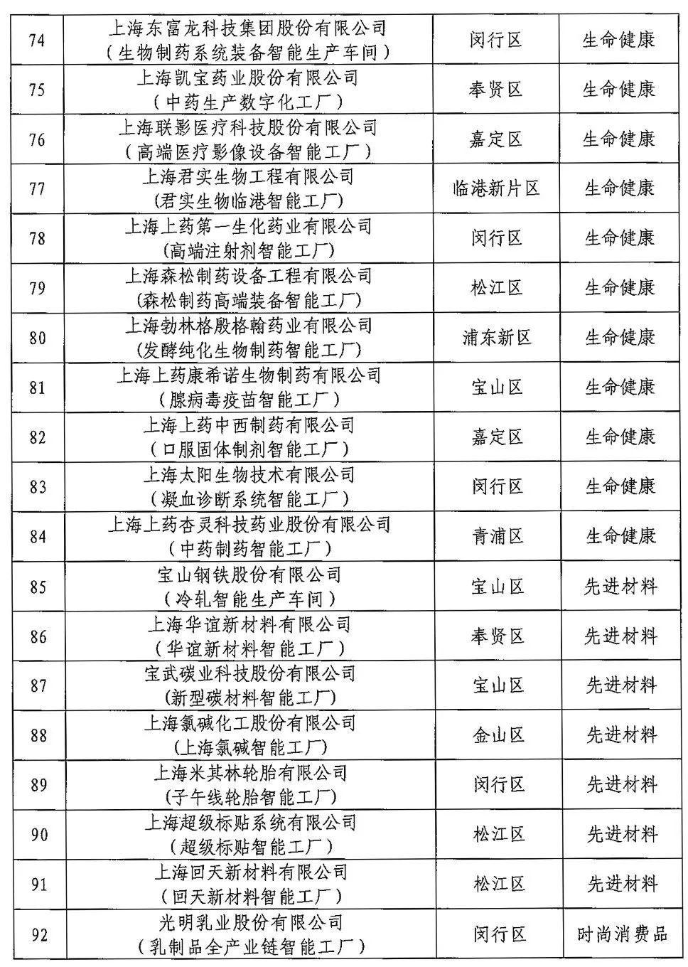 上海市100家智能工厂名单
